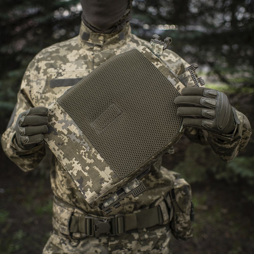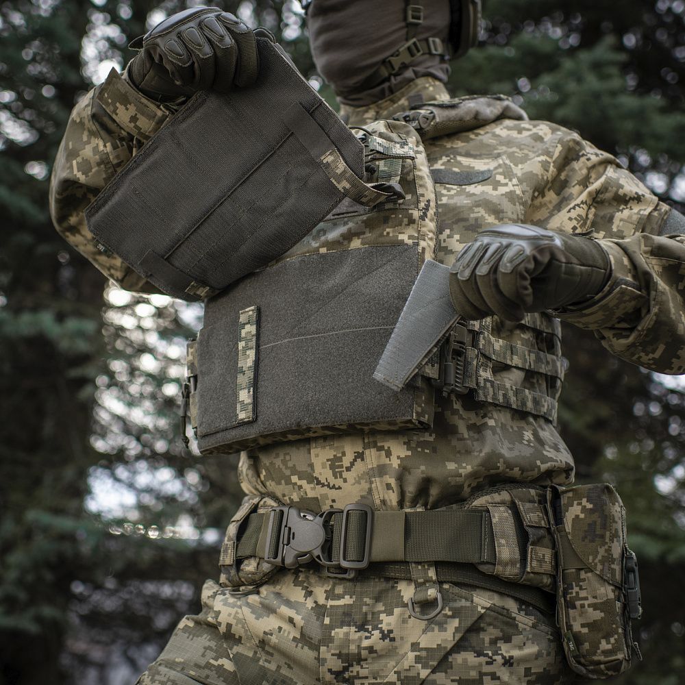 Підходить під:стандартні бронепластини ESAPI Extra Large (35.5 х 28 см) та Large (33.7 х 26 см) зі скошеними верхніми кутами