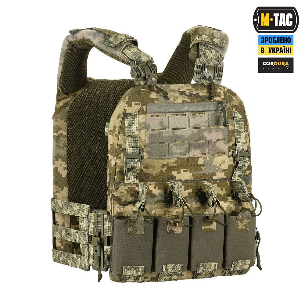 M-Tac плитоноска Cuirass Fast XL QRS – це надійний та функціональний засіб індивідуального бронезахисту в лінійці PLATE CARRIER. Розроблена дизайнерами бренду під стандартні бронеплити ESAPI (USA) Extra Large (35.5 х 28 см). Також за допомогою внутрішніх строп плитоноску можна підлаштувати під розмір плити Large (33.7 х 26 см).