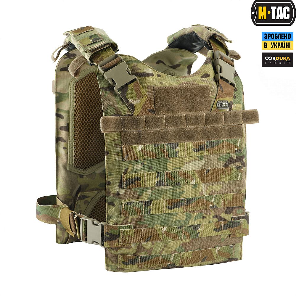 Особливості:- Має систему швидкого скидання, - Стропи MOLLE по всій поверхні, - Внутрішні кишені для твердих бронепанелей, - Ручка для евакуації на спині, - Внутрішня сітка для вентиляції і комфорту, - Регулюється по обхвату і висоті, - Панелі-липучки попереду і ззаду