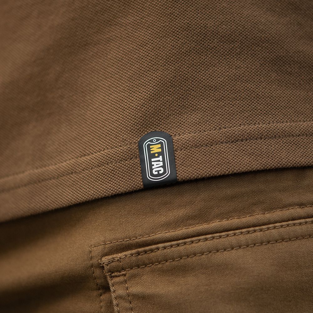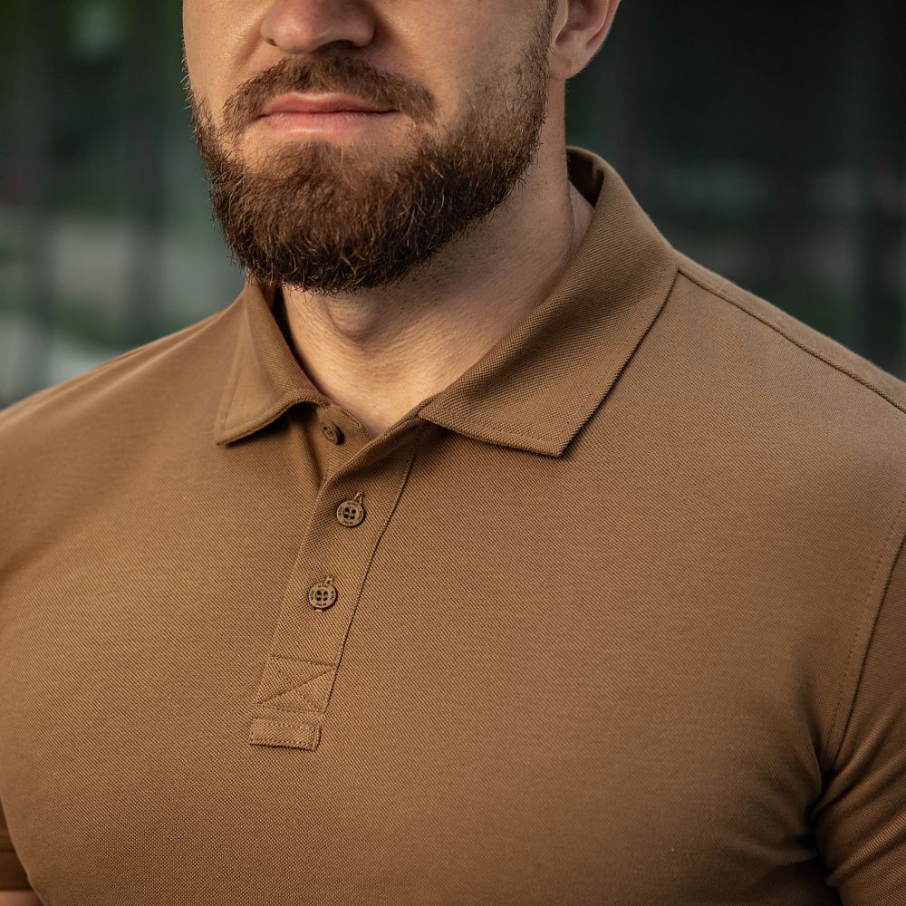 Поло виконане з трикотажного полотна “піке”, (65% бавовна, 35% поліестер). Завдяки складу, даний матеріал забезпечує хорошу повітропроникність, є легким та зносостійким.