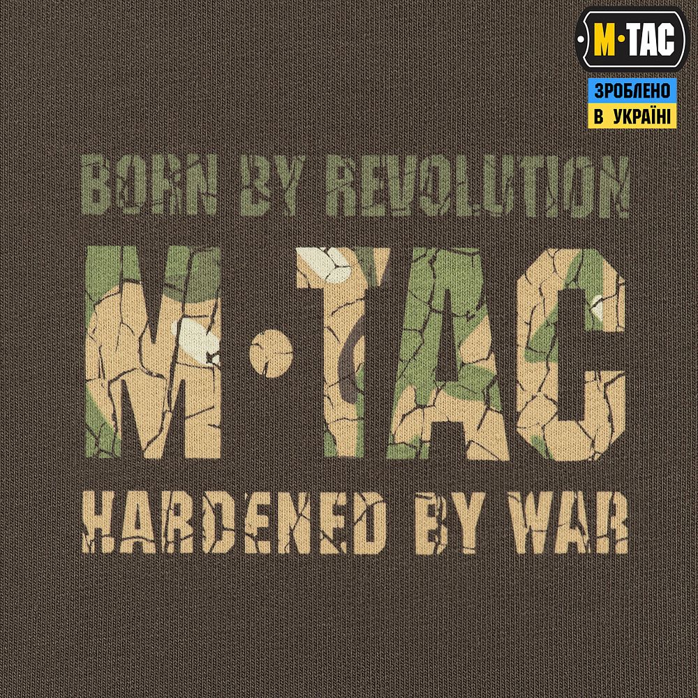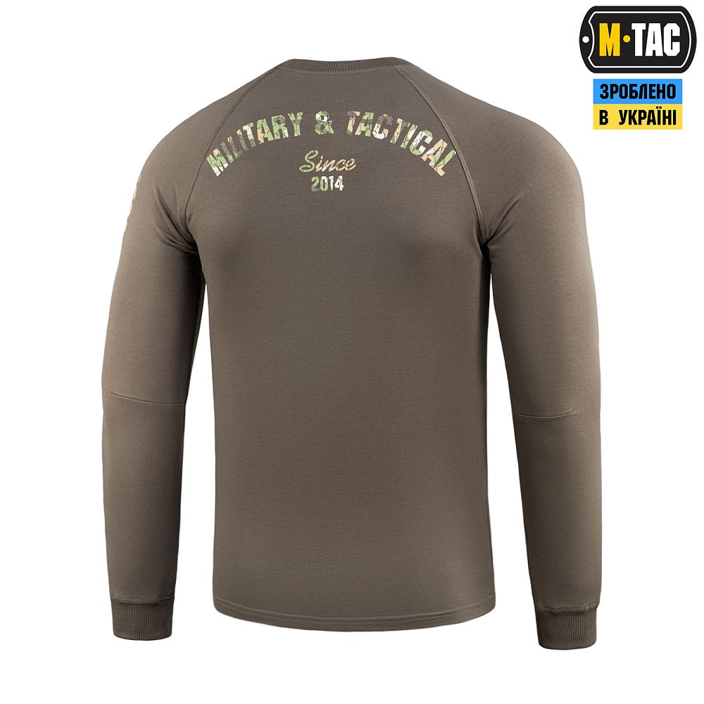 На спині реглана розміщений стилізований камуфляжний напис Military&Tactical Since 2014. Саме під час Революції Гідності народилась ідея створення українського бренду з пошиття та виготовлення тактичного одягу для військових і спецпризначенців. З того часу бренд активно розвивається, а одяг та спорядження від М-Тас вже неодноразово пройшли перевірку найгарячішими військовими конфліктами сьогодення.