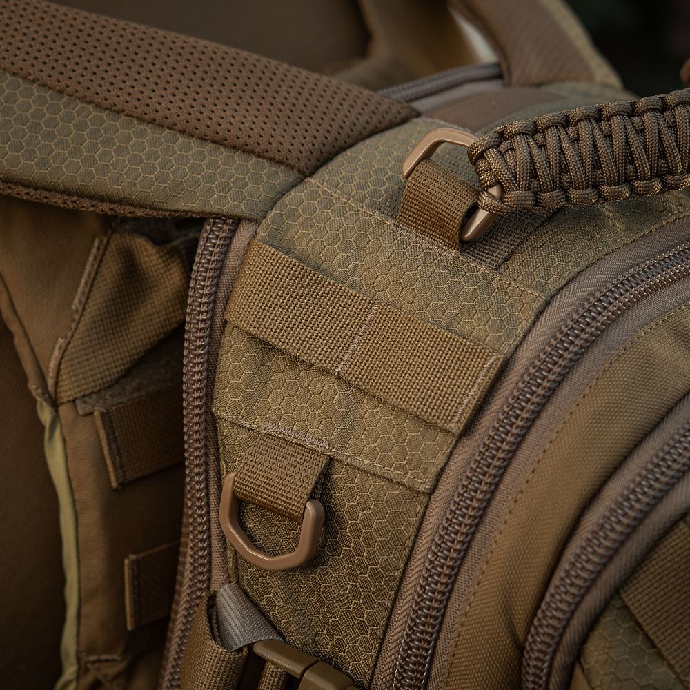 Виготовлений з Cordura Hex 1000D і Cordura 1000D – якісних і зносостійких матеріалів, що забезпечують захист від механічних пошкоджень і довгий термін експлуатації. Спереду рюкзак оснащений системою MOLLE LASER CUT, що дозволить при необхідності збільшити його об'єм додатковими підсумками.