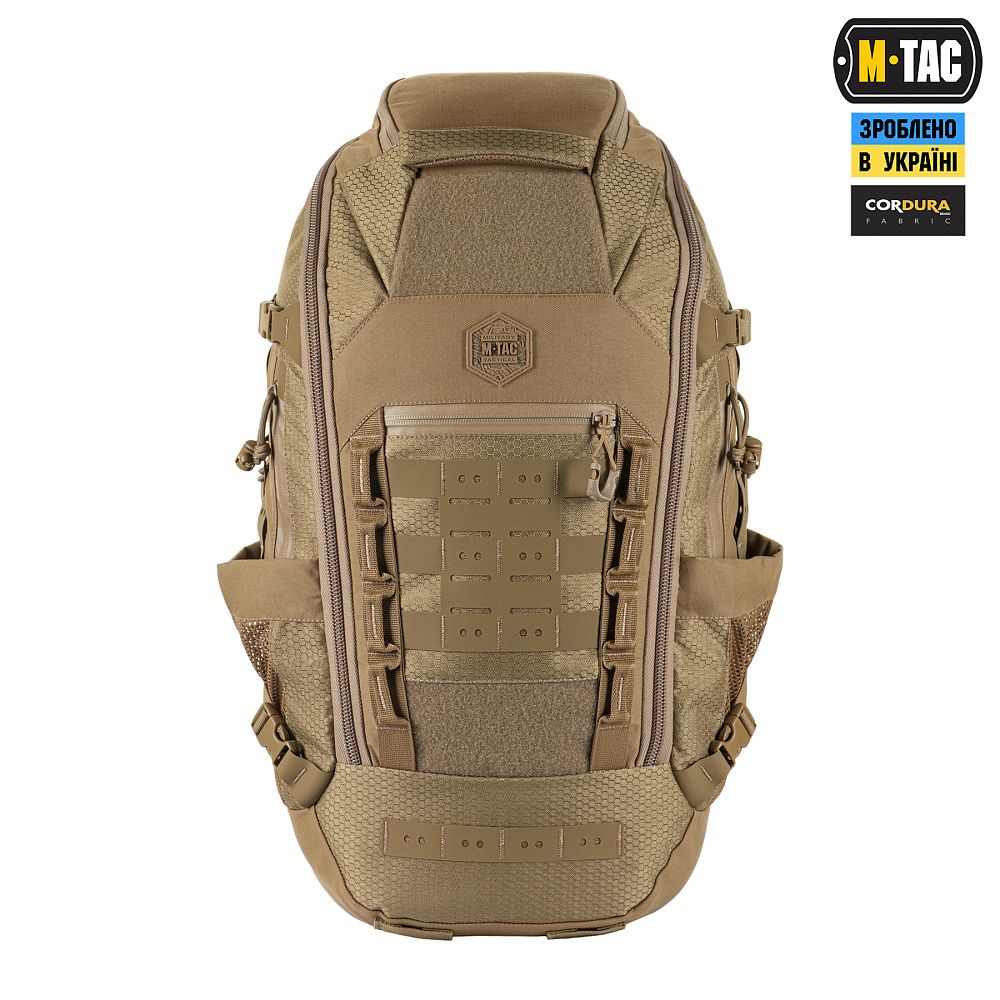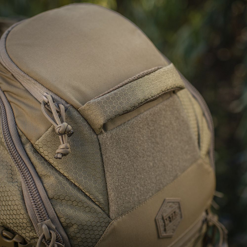 Виготовлений з Cordura 500D та Cordura Hex – якісного та зносостійкого матеріалу, що забезпечить захист від механічних пошкоджень та тривалий термін експлуатації. Спереду та з боків рюкзак оснащений системою MOLLE LASER CUT, що дозволить за необхідності збільшити об'єм за допомогою додаткових підсумків.
