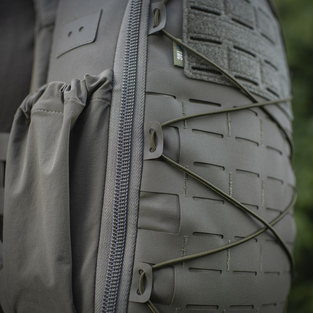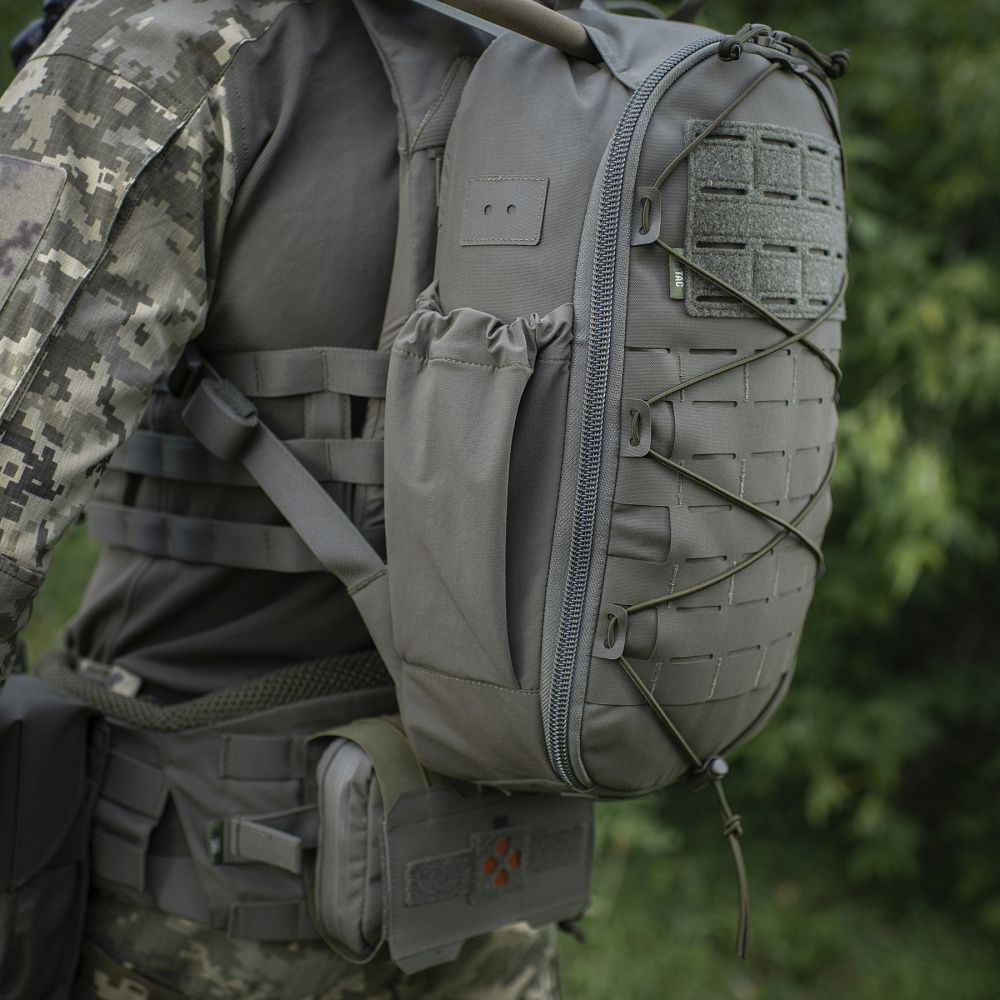 - Система MOLLE LASER CUT; - Основне відділення з відсіком для гідратора; - Зверху рюкзака є отвір для трубки гідратора; - Дві сітчасті кишені на відкидному клапані рюкзака; - Бокові кишені для пляшки з водою; - Спинка посилена спеціальним пластиком; - Знизу є стропи для кріплення додаткового спорядження; - Велкро липучки спереду для ідентифікаторів та патчів. |