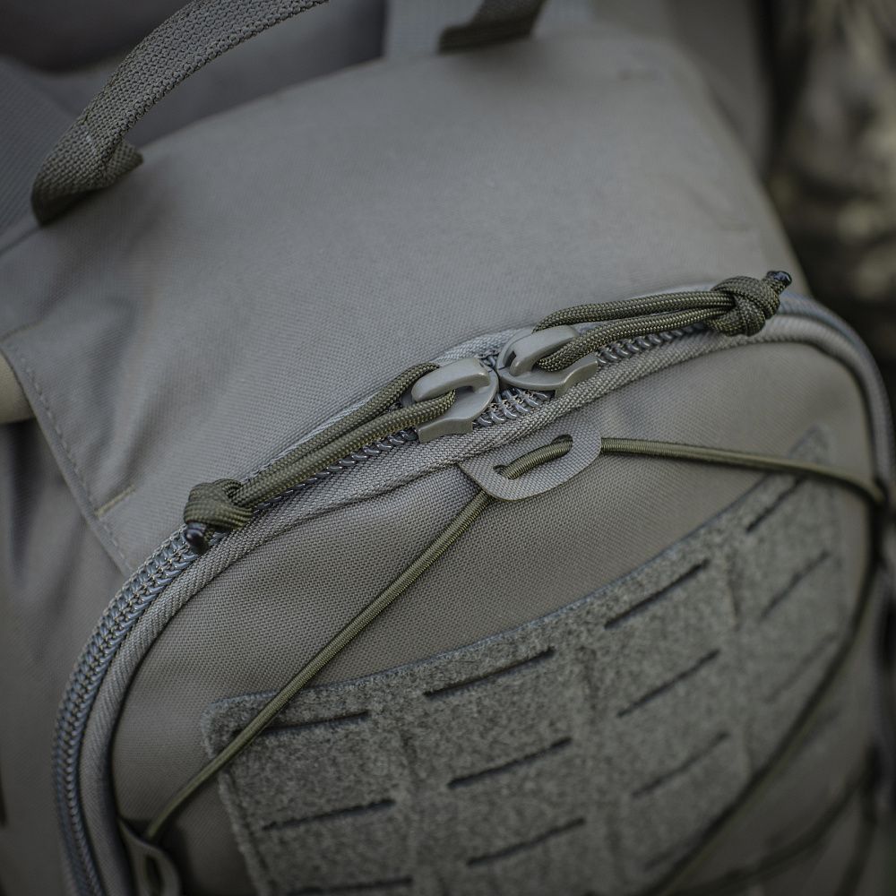Конструкція рюкзака передбачає одне основне відділення, яке відкривається за принципом валізи та дозволить вмісти весь необхідний мінімум речей. Всередині відділення є відсік для питної системи, а зверху – отвір для трубки гідратора. На відкидному клапані рюкзака знаходяться дві сітчасті кишені, які підійдуть для розміщення EDC-набору. Спереду рюкзак оснащений системою Molle Laser Cut, що виготовлена з Cordura Squadron і дозволяє прикріпити додаткове спорядження.