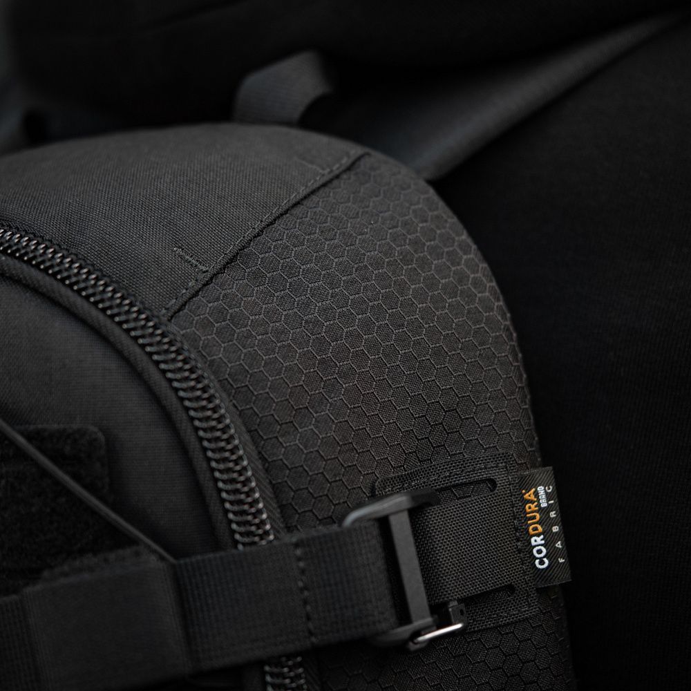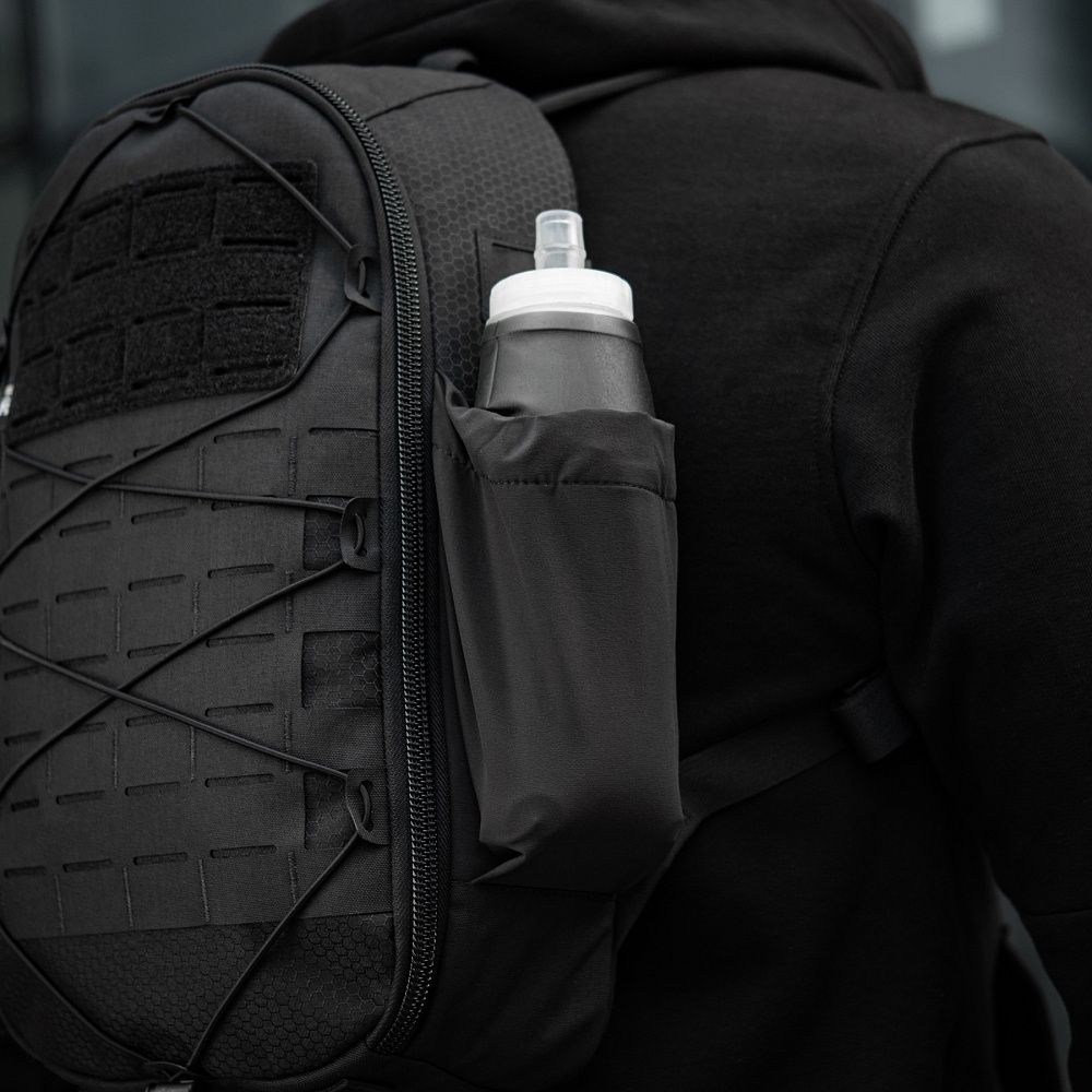 Виготовлений з Cordura 500D та Cordura 1000D – якісних та зносостійких матеріалів, що забезпечать захист від механічних пошкоджень та тривалий термін експлуатації. Бічні кишені, виготовлені з еластичного матеріалу Flex, призначені для розміщення пляшки з водою.