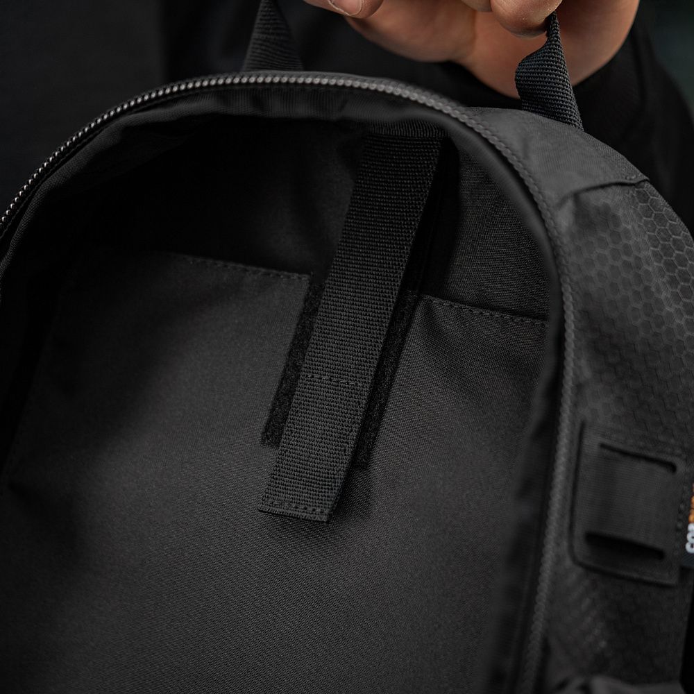 Рюкзак має одне основне відділення, яке відкривається за принципом валізи та дозволить вмістити весь необхідний мінімум речей. Всередині відділення є відсік для питної системи, а зверху – отвір для трубки гідратора. На відкидному клапані рюкзака знаходяться дві сітчасті кишені, які підійдуть для розміщення EDC-набору. Спереду рюкзак оснащений системою Molle Laser Cut, що виготовлена з Cordura Squadron і дозволяє прикріпити додаткове спорядження.
