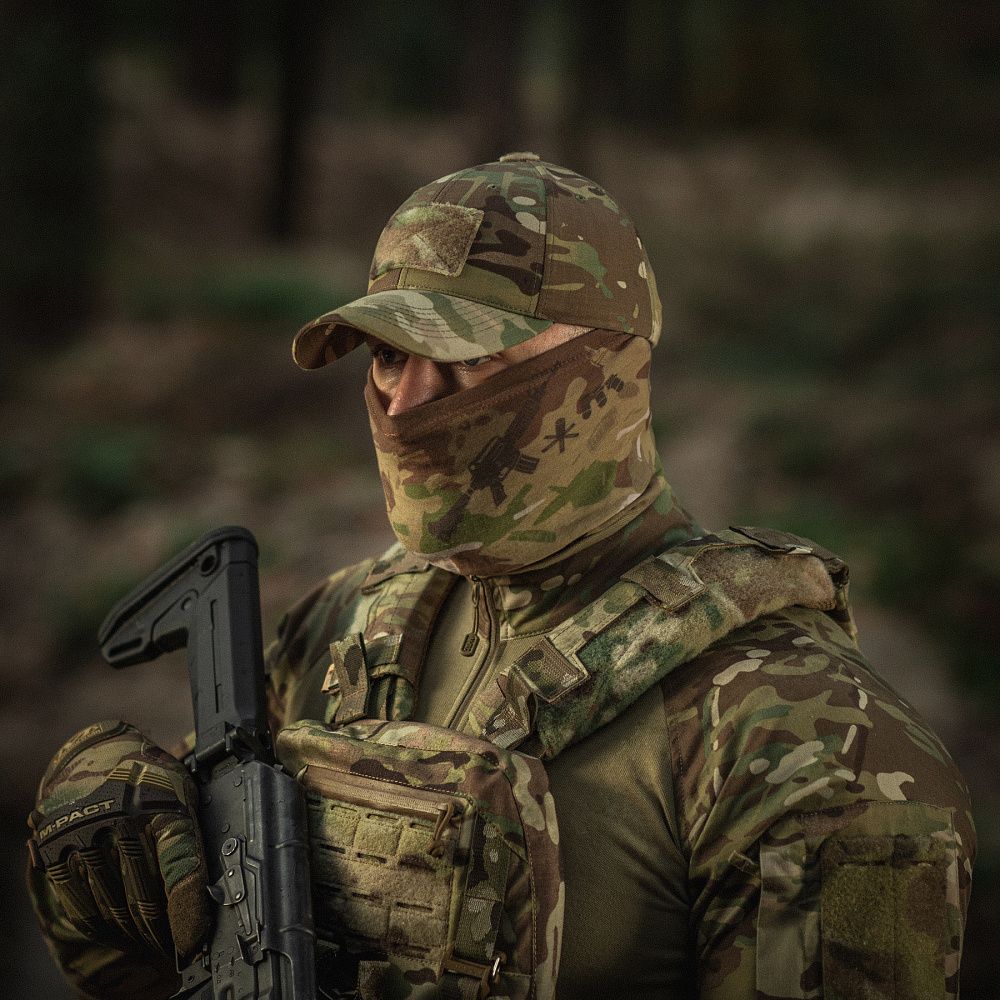 Конструкція шарфа-труби дозволяє повністю закрити обличчя, залишаючи відкритими лише очі, або ж використовувати її як напівмаску або шарф. Така варіативність дозволить підвищити комфорт та зручність під час виконання бойових завдань.