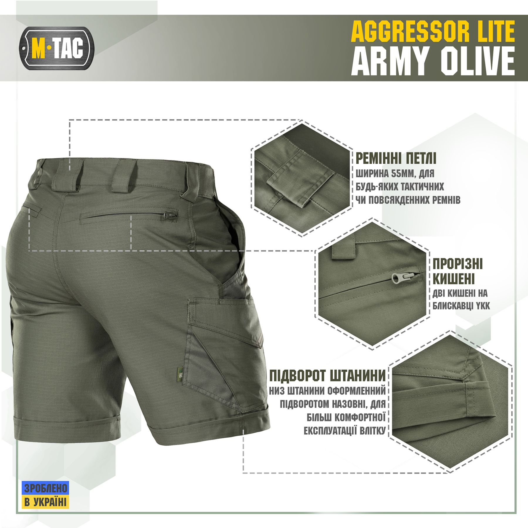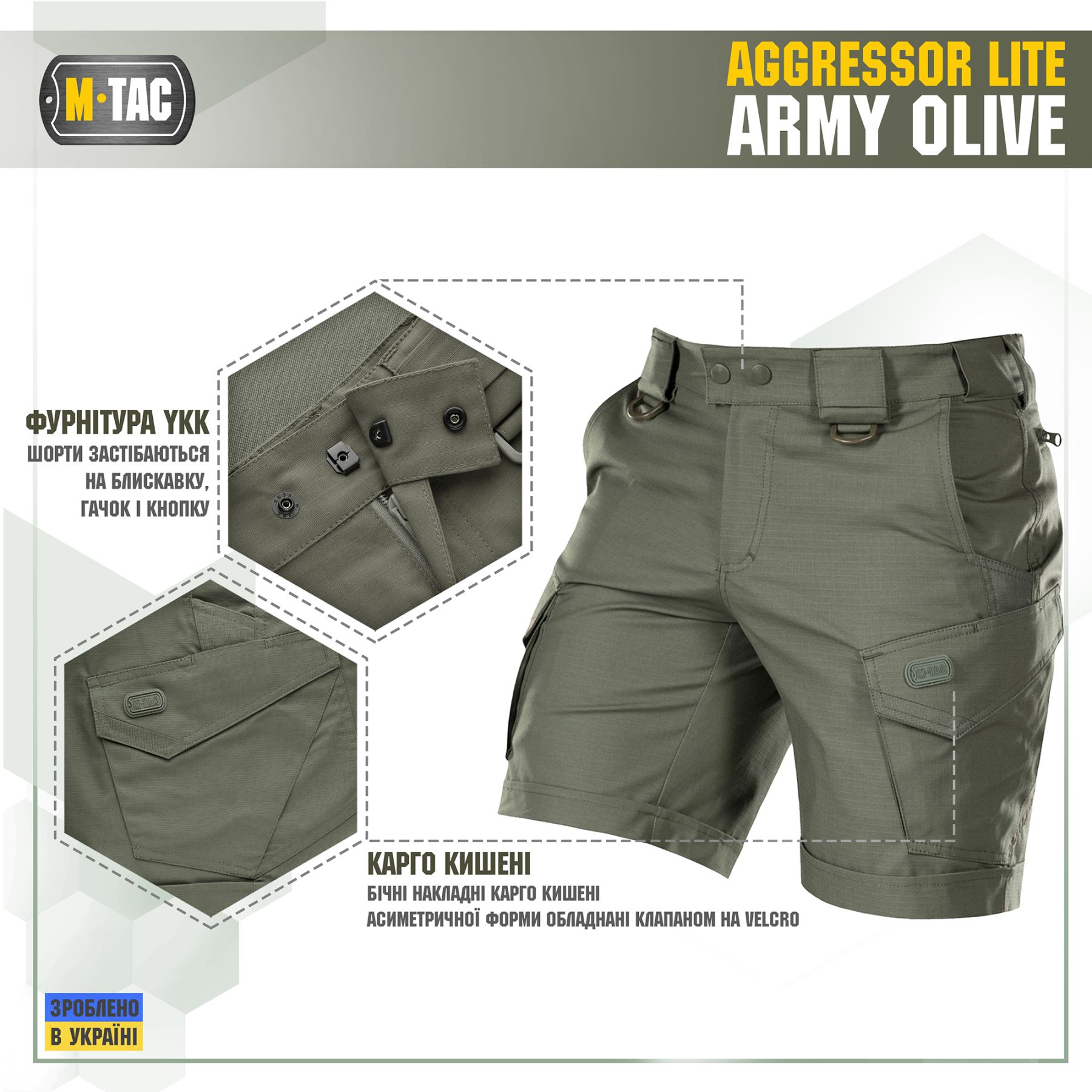 M-Tac шорти Aggressor short засновані на дизайні штанів Aggressor першої генерації, але з деякими доповненнями. Це вкорочена модель шорт «карго»: довжиною до колін, з простроченим відворотом. Такі шорти будуть доречні і в місті і на природі, особливо в умовах спекотної погоди. Ви зможете носити їх на тренування, на стрільбище, на роботу, а також під час подорожі або прогулянки. Шорти не обмежують рухи, і при цьому виглядають як повсякденний одяг в стилі «кежуал», що не впадає в око. Саме непомітний, але функціональний дизайн дозволяє використовувати такі шорти як елемент тактичного одягу.