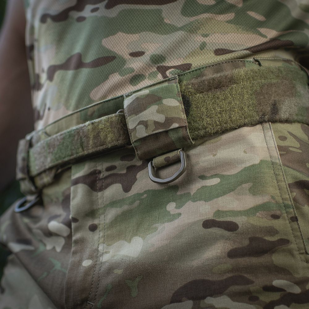 Комфорт рухів забезпечується не тільки завдяки еластичному матеріалу рипстоп полікоттон Flex, але і «тунельній» конструкції пояса, яка забезпечує ідеальну посадку по талії і не заважає нахилятися. Пояс закривається на блискавку, гачок і кнопку, а регулюється за об'ємом за допомогою внутрішніх еластичних вставок. Відразу під фронтальними шлейками для ременя нашиті D-кільця YKK для кріплення предметів за допомогою карабіна або петлі. Шорти розраховані на носіння з ременем шириною до 5.5 см.
