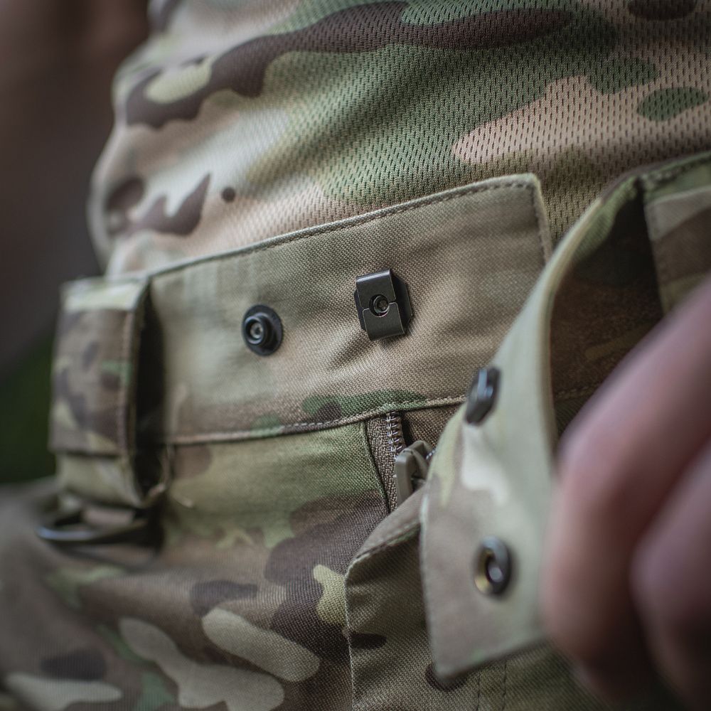 Пара задніх кишень - прорізні в рамку, і закриваються на «блискавки». Така конструкція зводить до мінімуму ризик втрати вмісту кишень, навіть якщо ви повисли догори ногами, повзете на спині, або перекочуютесь, що часто буває при виконанні тактичних вправ.