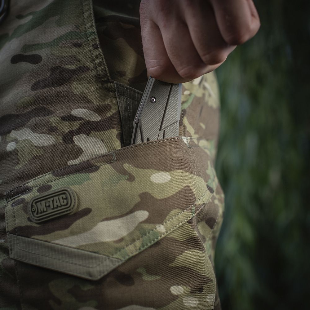 Широкі бічні брючні кишені посилені вставками в нижній частині: тут є місце для кріплення кліпси складного ножа, тактичної ручки або міні-ліхтаря.
