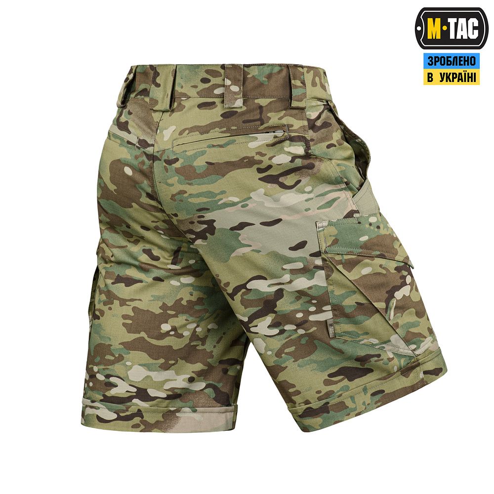 M-Tac шорти Aggressor short засновані на дизайні штанів Aggressor першої генерації, але з деякими доповненнями. Це вкорочена модель шорт «карго»: довжиною до колін, з простроченим відворотом. Такі шорти будуть доречні і в місті і на природі, особливо в умовах спекотної погоди. Ви зможете носити їх на тренування, на стрільбище, на роботу, а також під час подорожі або прогулянки. Шорти не обмежують рухи, і при цьому виглядають як повсякденний одяг в стилі «кежуал», що не впадає в око. Саме непомітний, але функціональний дизайн дозволяє використовувати такі шорти як елемент тактичного одягу.