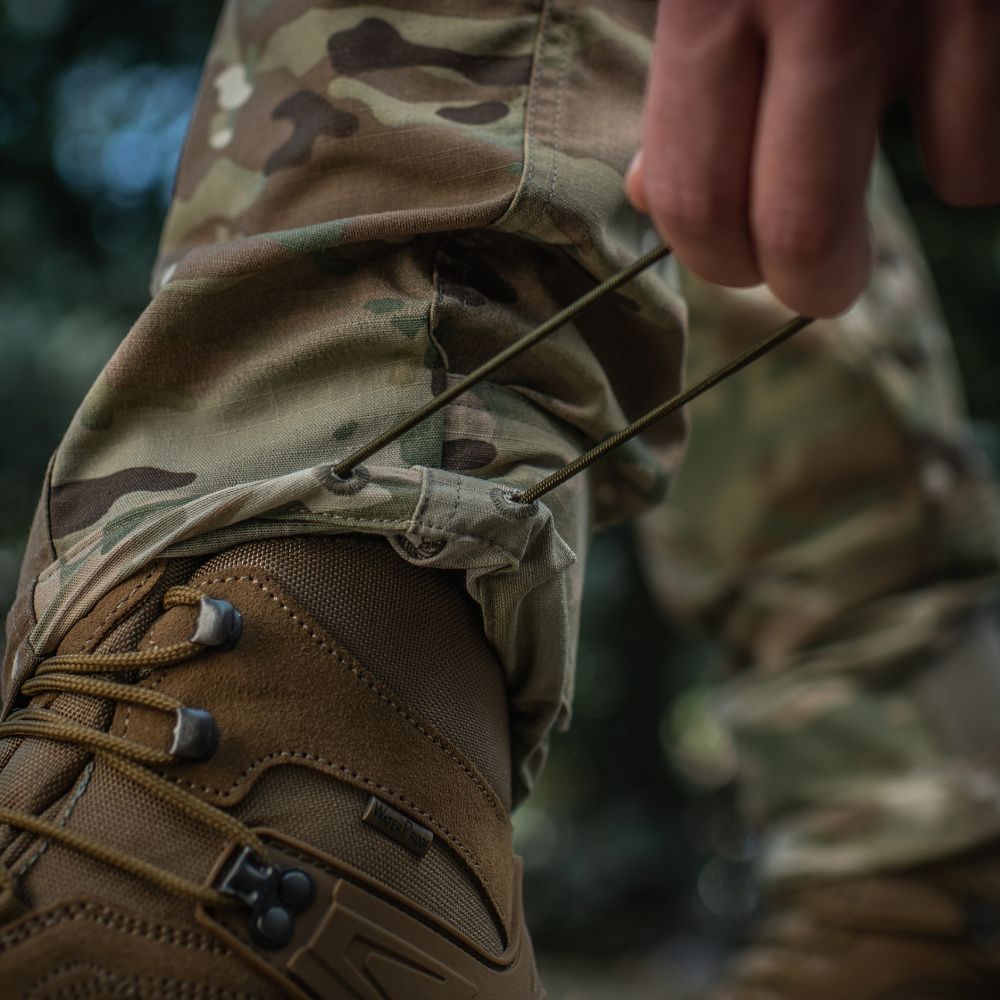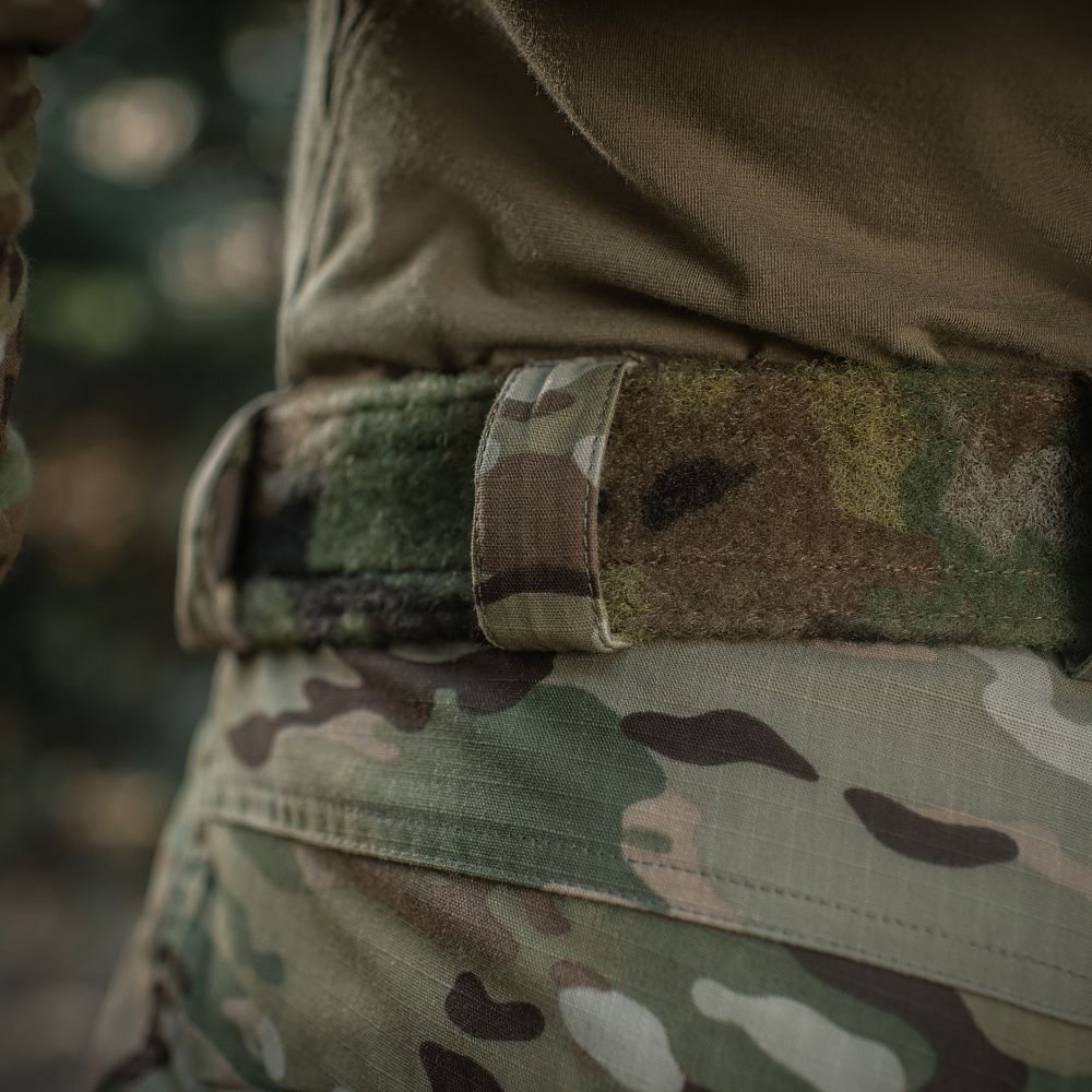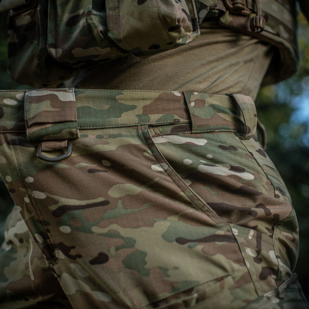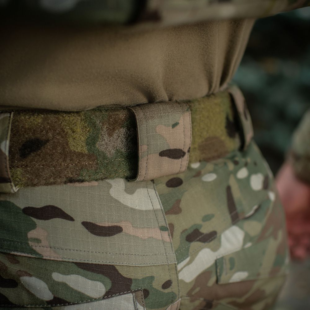 Конструктивною особливістю штанів Aggressor Elite Nyco Extreme Multicam є еластичний “тунельний” пояс зі зручним регулюванням посадки, відповідно до ваших параметрів. На ньому також розташовані шлейки для ременя (шириною до 5,5 см) та два D-кільця для підвісу різного устаткування. Штани застібаються на застібку-блискавку, внутрішній гачок і кнопку (виробництва YKK).