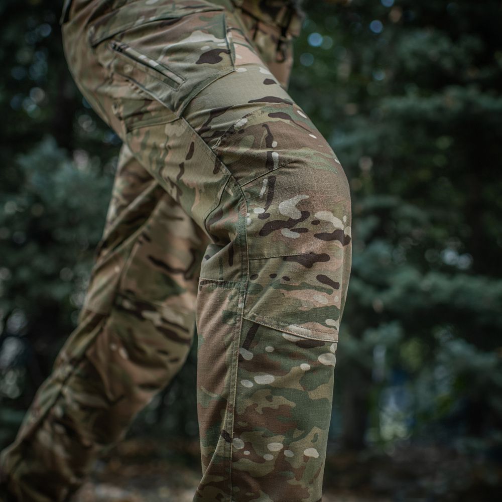 Завдяки продуманому крою штани не обмежують рухи: у них зручно стрибати, бігати, нахилятися, присідати й пересуватися по пересіченій місцевості. Штани оснащені великою кількістю кишень, як утилітарних, так і спеціальних: всього їх сім. Також в цій моделі передбачений прихований внутрішній відсік для наколінників, що дає можливість встановлення додаткового захисту.