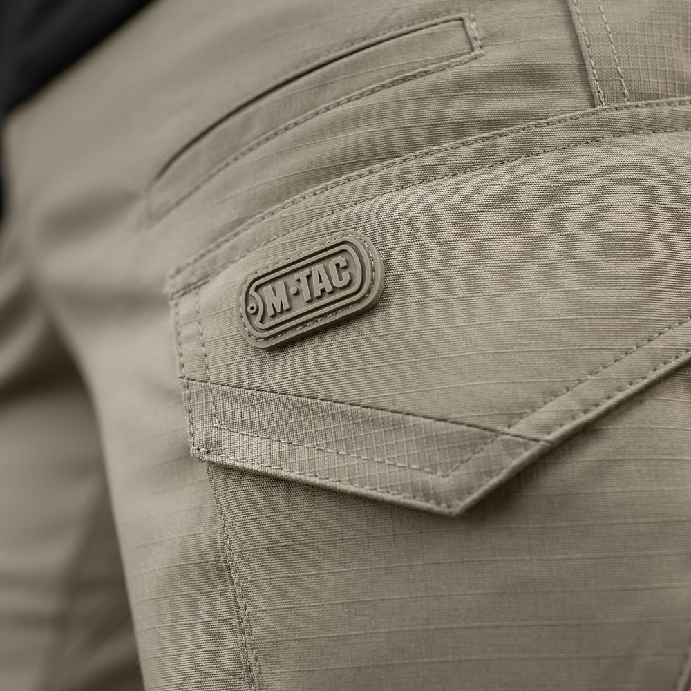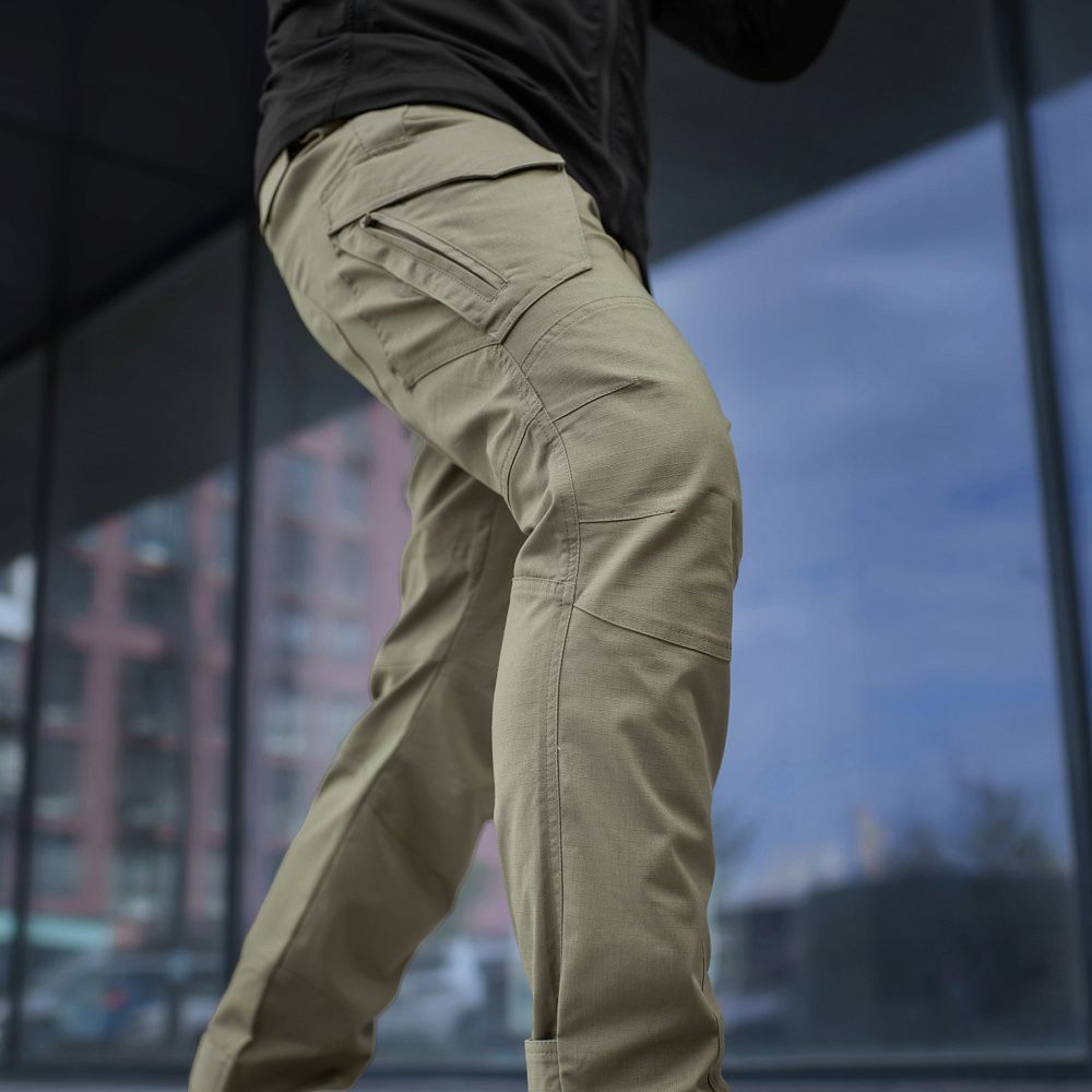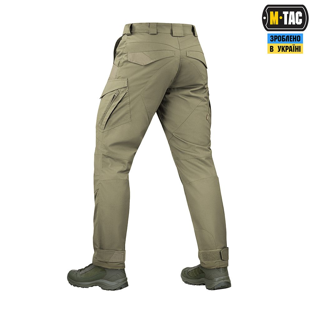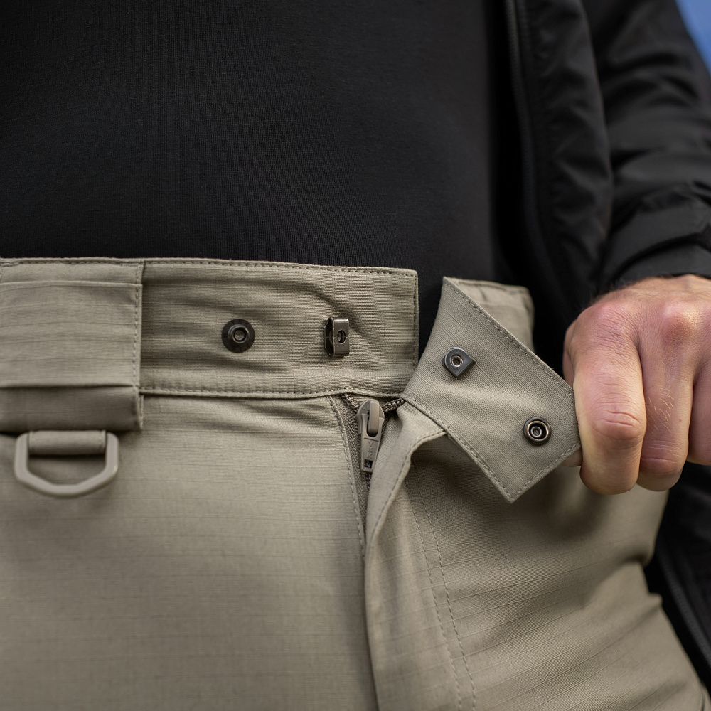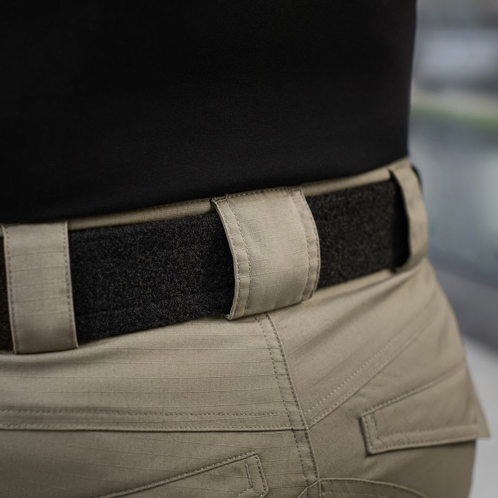 Тактичні штани Aggressor Gen.II Flex ви можете використовувати як для тренувань, стрільбища, роботи, так і для ділової подорожі або прогулянки. Вітчизняний бренд M-Tac намагається вносити інноваційні технології на ринок. Пошиті штани з легкої, однотонної тканини ріп-стоп, із водо- і брудозахисним просоченням Teflon. Тканина з вмістом поліестеру і бавовни приємна до тіла, добре тримає колір і відрізняється високою міцністю. Основним завданням дизайнерів брюк було зберегти комфорт рухів, і з цим вони впоралися на всі сто відсотків – штани створюють відчуття легкості, не сковують рухи і виглядають стильно і солідно. Зручні широкі кишені з посиленими вставками. Штани розраховані на носіння з ременем шириною до 5.5 сантиметрів. Спереду на кріпленнях для ременя нашиті пряжки для кріплення чого завгодно (за допомогою карабінів). Якісна фурнітура від компанії YKK. Добре підібрані за розміром штани настільки зручно сидять і носяться, що складається враження, ніби вдягнений в спортивні штани.