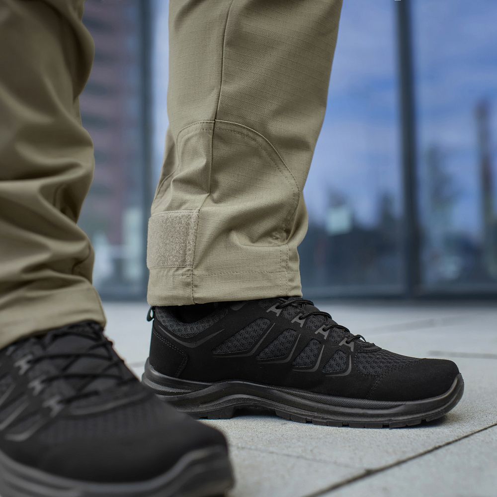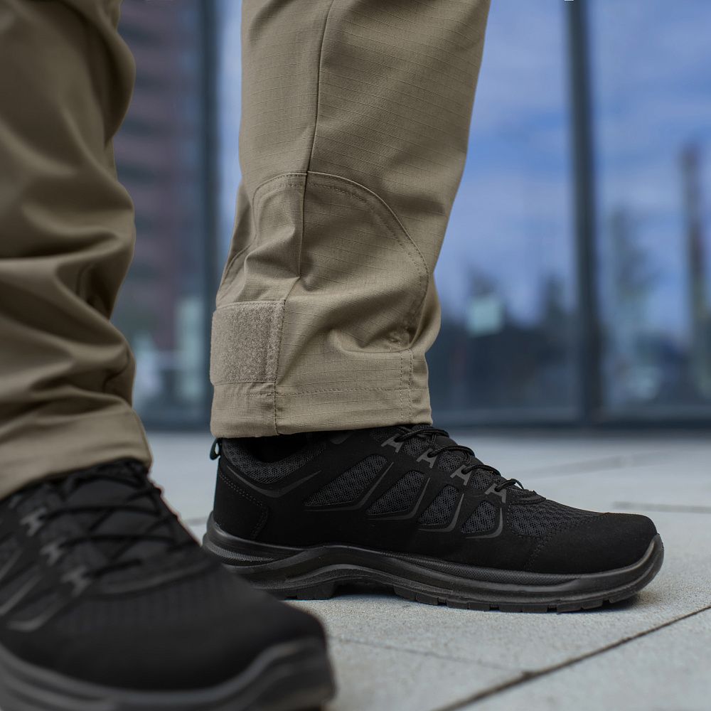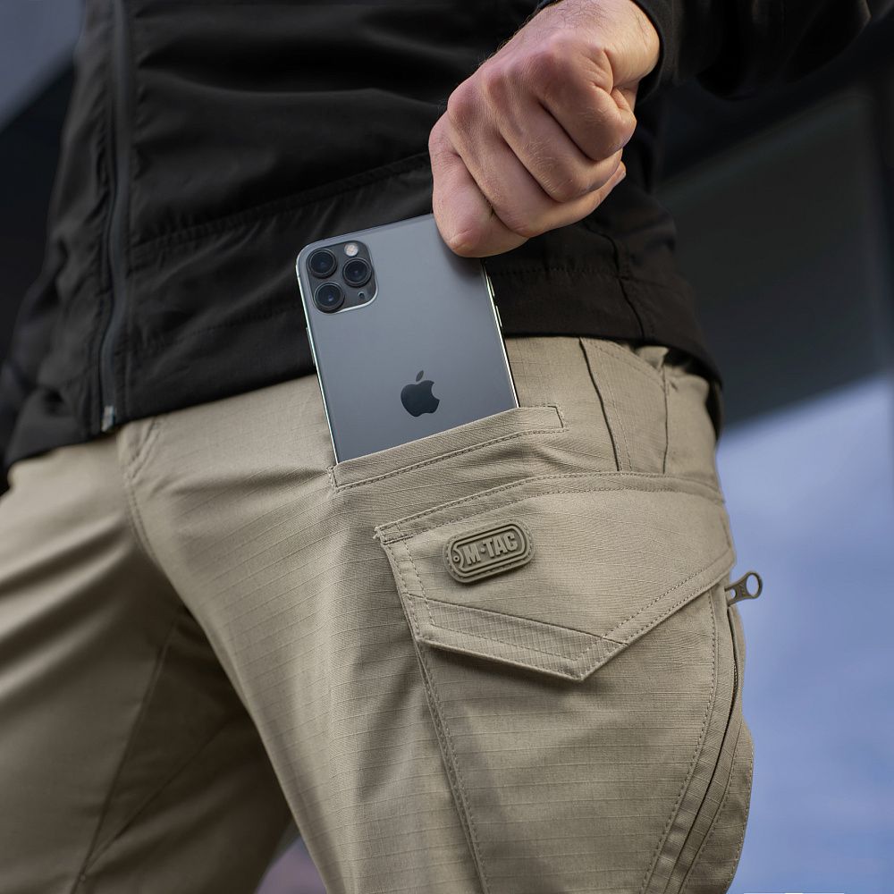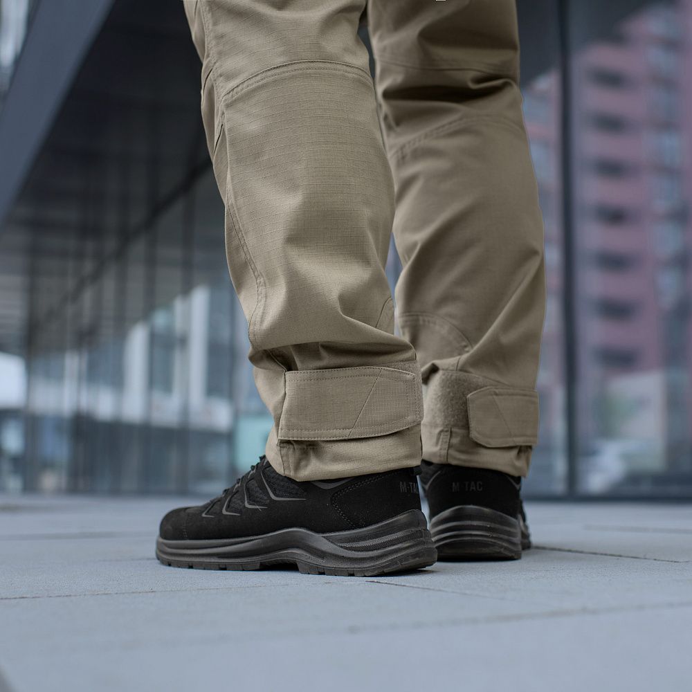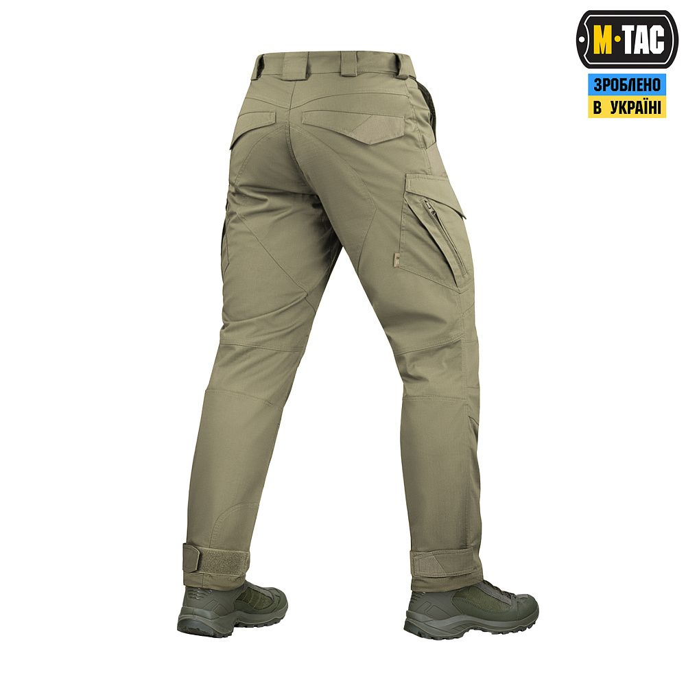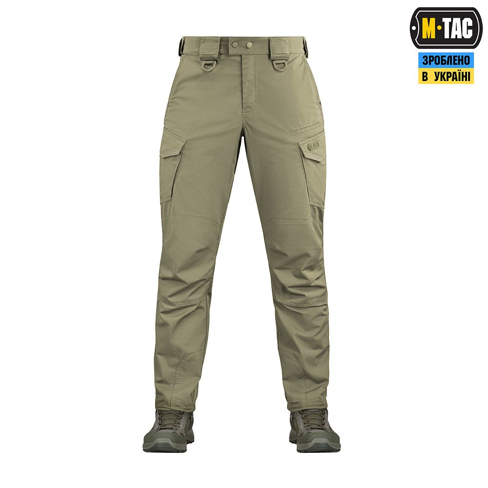 Тактичні штани Aggressor Gen.II Flex ви можете використовувати як для тренувань, стрільбища, роботи, так і для ділової подорожі або прогулянки. Вітчизняний бренд M-Tac намагається вносити інноваційні технології на ринок. Пошиті штани з легкої, однотонної тканини ріп-стоп, із водо- і брудозахисним просоченням Teflon. Тканина з вмістом поліестеру і бавовни приємна до тіла, добре тримає колір і відрізняється високою міцністю. Основним завданням дизайнерів брюк було зберегти комфорт рухів, і з цим вони впоралися на всі сто відсотків – штани створюють відчуття легкості, не сковують рухи і виглядають стильно і солідно. Зручні широкі кишені з посиленими вставками. Штани розраховані на носіння з ременем шириною до 5.5 сантиметрів. Спереду на кріпленнях для ременя нашиті пряжки для кріплення чого завгодно (за допомогою карабінів). Якісна фурнітура від компанії YKK. Добре підібрані за розміром штани настільки зручно сидять і носяться, що складається враження, ніби вдягнений в спортивні штани.