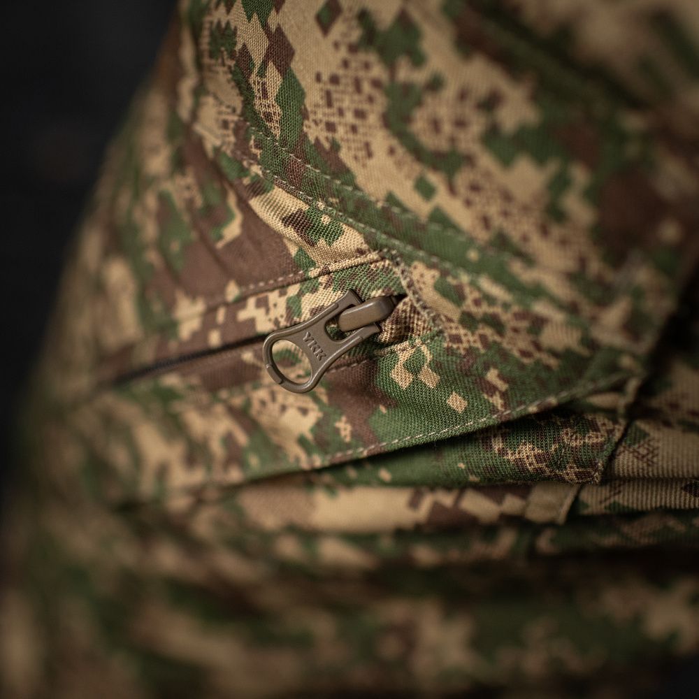Штани виконані у камуфляжі Національної гвардії України “Хижак”. Пошиті з легкої та міцної тканини (50% бавовна, 50% поліестер), яка часто використовується у виробництві тактичного одягу, адже є прикладом поєднання зносостійкості та повітропроникності.