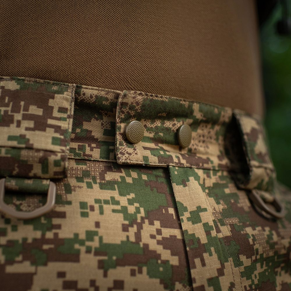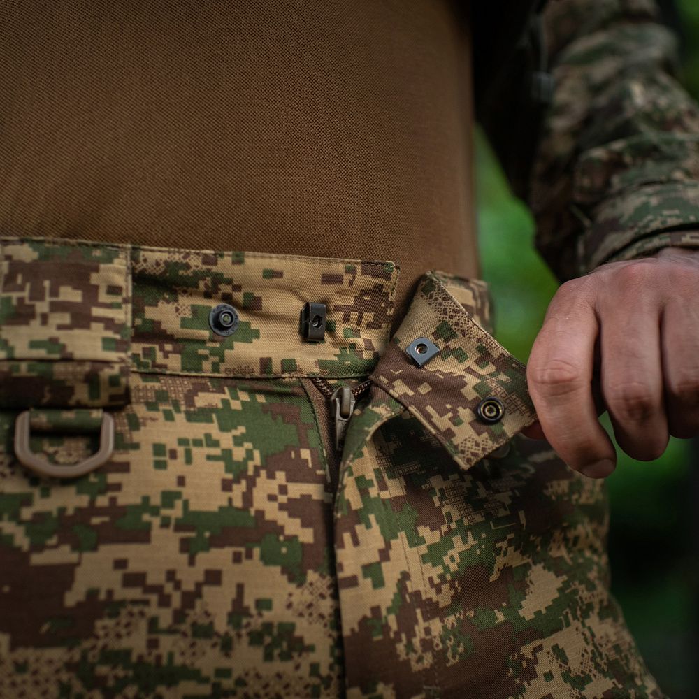 M-Tac штани Aggressor Gen.II NGU Camo мають велику кількість кишень: всього їх сім. Оснащені еластичним "тунельним" поясом зі зручним регулюванням посадки, розрахованим на носіння ременем шириною до 6 сантиметрів. Також, на поясі розташовані D-кільця, призначені для розміщення додаткового устаткування.
