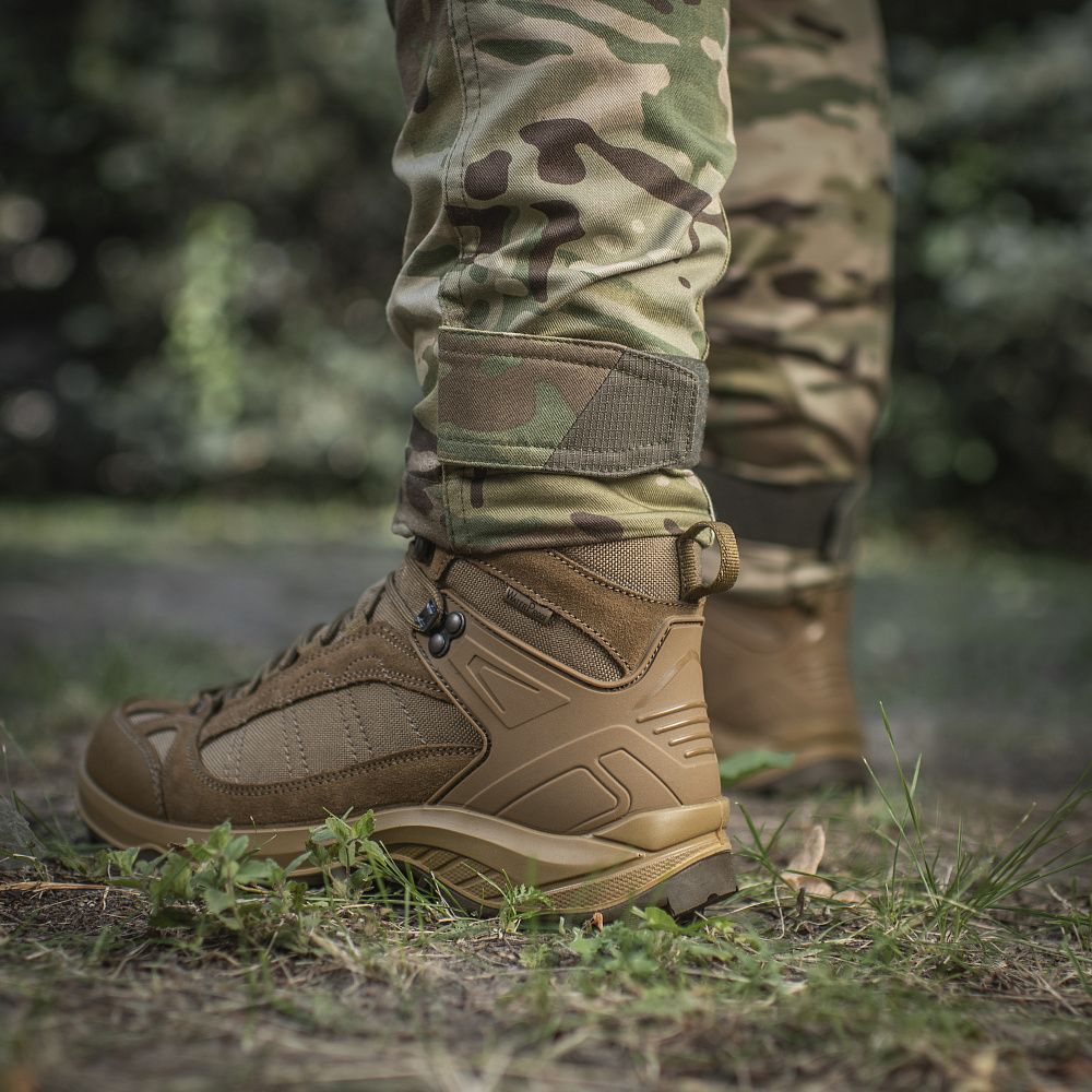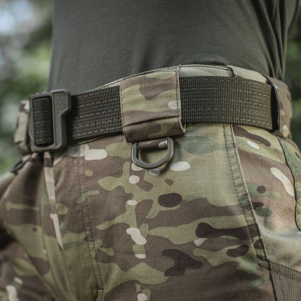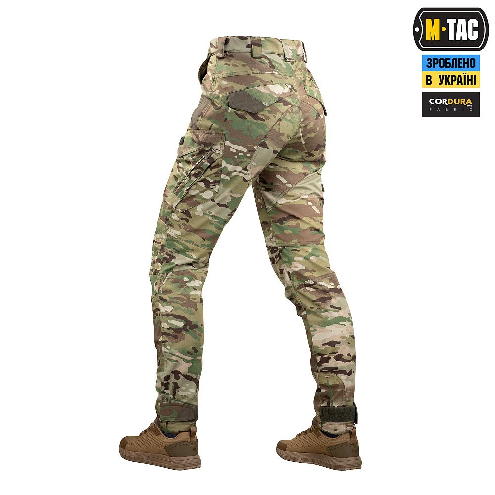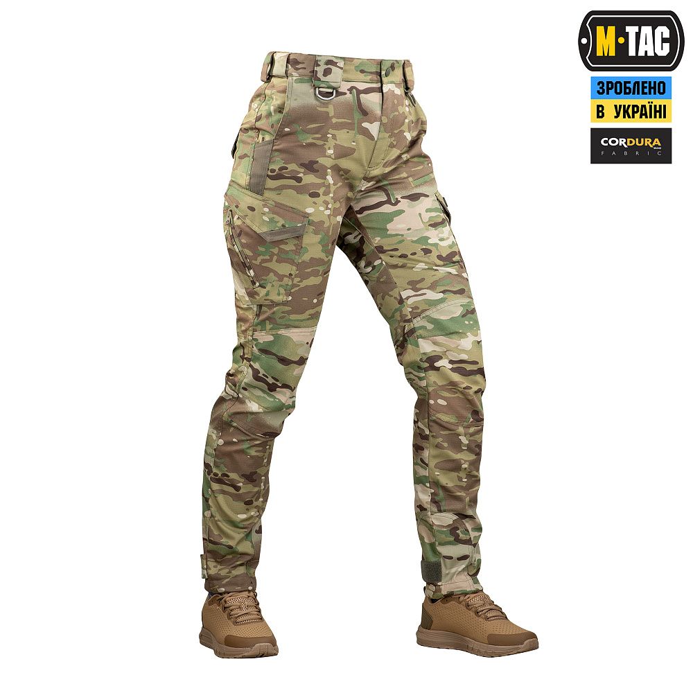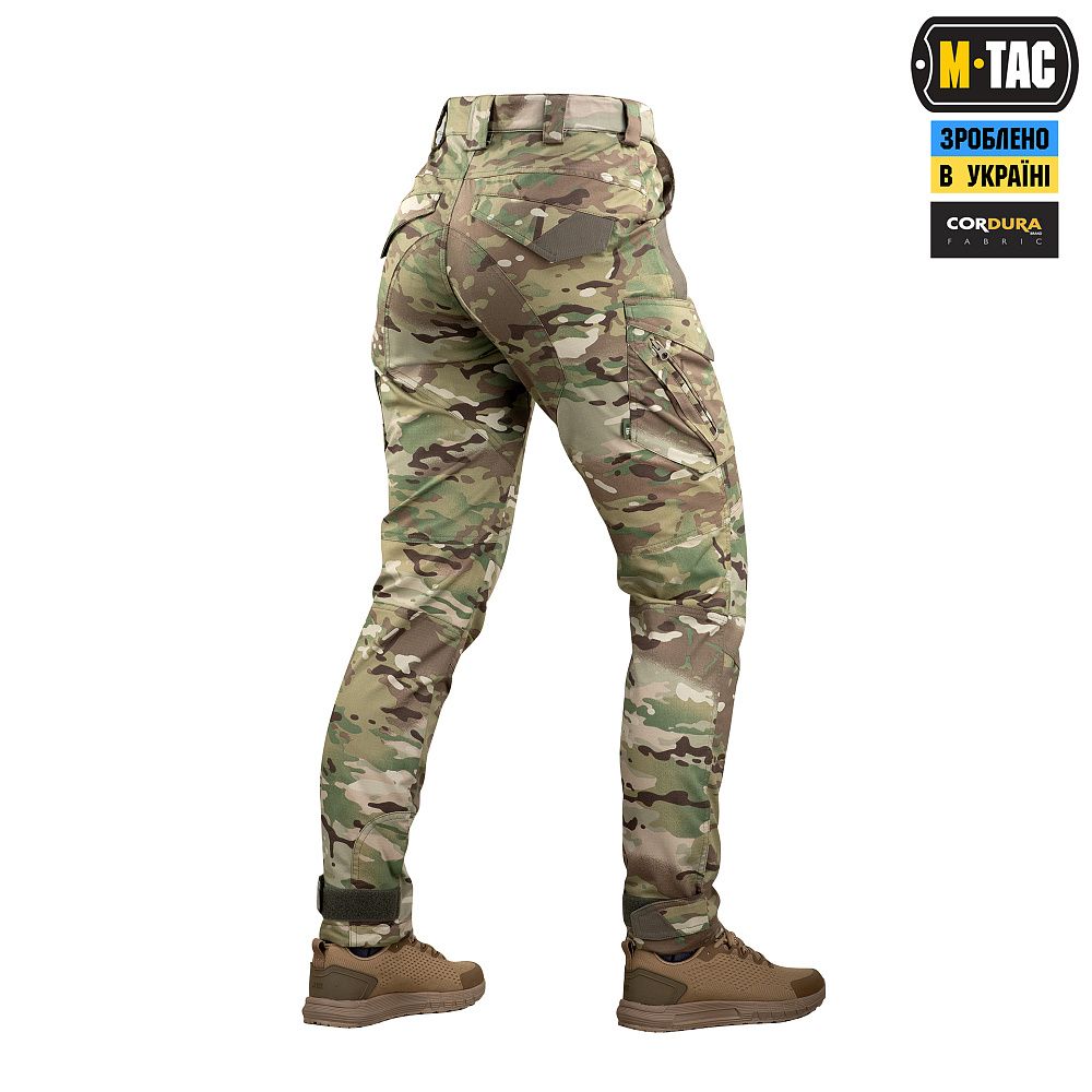 Зручні широкі кишені з посиленими вставками з Cordura (R) вмістять необхідний мінімум речей. Конструктивною особливістю штанів є еластичний «тунельний» пояс, за допомогою якого штани регулюються по об’єму талії. Спереду нижче пояса є два D-кільця для кріплення додаткового спорядження. Низ штанин регулюється по ширині за допомогою еластичного шнура та велкро клапана. Прихований внутрішній відсік для наколінників дає можливість встановлення додаткового захисту.