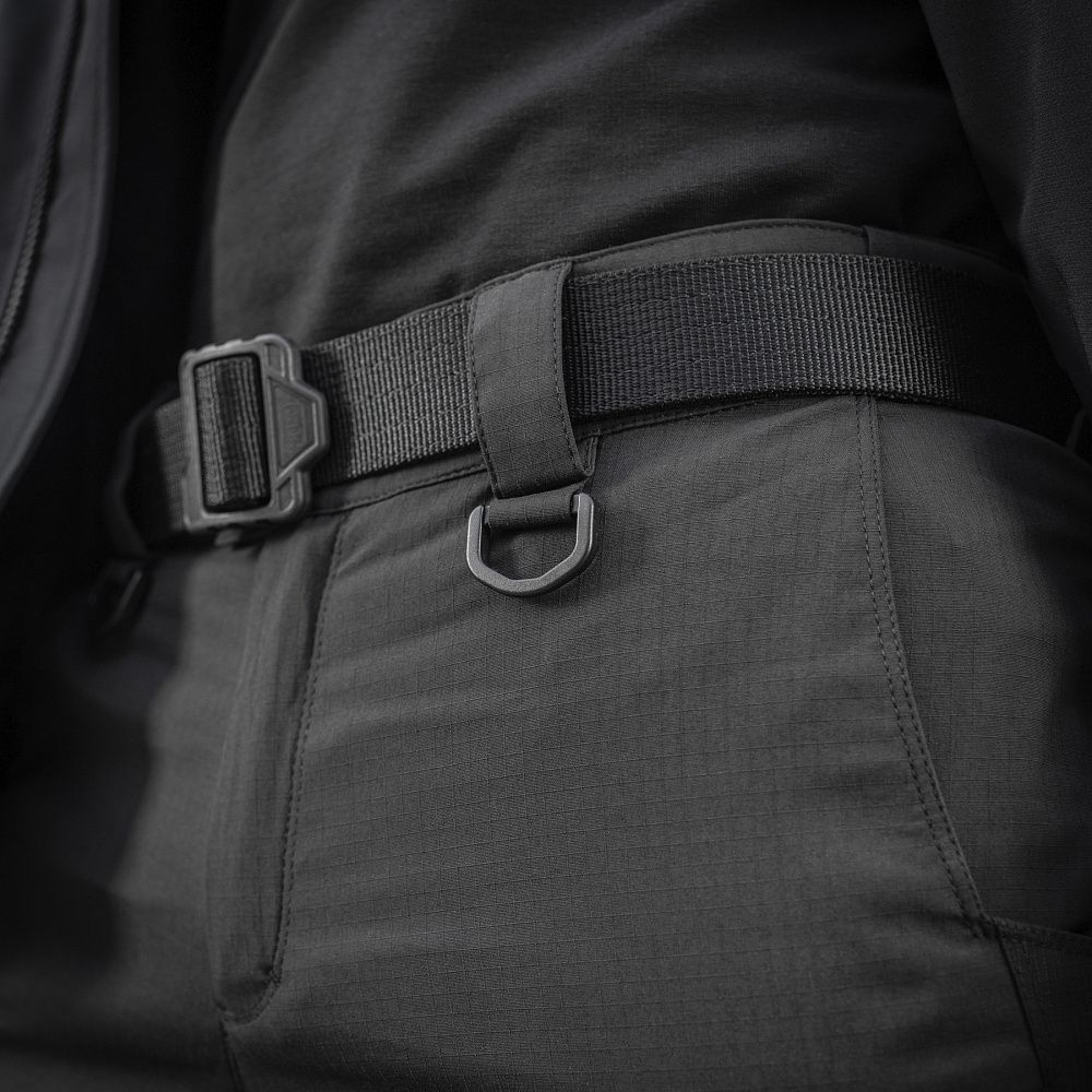 Зручні широкі кишені з посиленими вставками розмістять необхідний мінімум речей. Якісна фурнітура від компанії YKK. Також штани мають еластичний "тунельний" пояс зі зручним регулюванням посадки і розраховані на носіння з ременем шириною до 5.5 сантиметрів. Спереду нижче пояса є два D-кільця для підвісу різного спорядження. Низ штанин регулюється по ширині за допомогою еластичного шнура і велкро клапана.