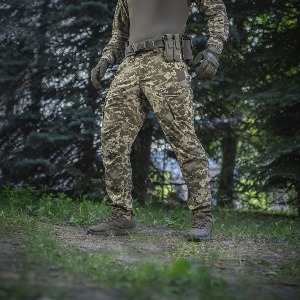 Завдяки продуманому крою штани не обмежують свободу рухів: в них зручно стрибати, бігати, нахилятися, присідати і пересуватися по пересіченій місцевості. Зручні широкі кишені з посиленими вставками розмістять необхідний мінімум речей. Також штани мають еластичний "тунельний" пояс зі зручним регулюванням посадки і розраховані на носіння з ременем шириною до 5.5 сантиметрів. Спереду нижче пояса є два D-кільця для підвісу різного спорядження. Низ штанин регулюється по ширині за допомогою еластичного шнура і велкро клапана.
