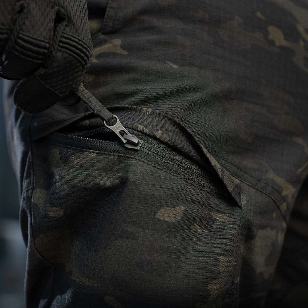Конструктивною особливістю штанів M-Tac штани Patrol Gen.III Nyco Extreme Multicam Black є еластичний “тунельний” пояс зі зручним регулюванням посадки, відповідно до ваших параметрів. На ньому також розташовані шлейки для ременя (шириною до 5,5 см). Штани застібаються на застібку-блискавку, внутрішній гачок і кнопку (виробництва YKK).