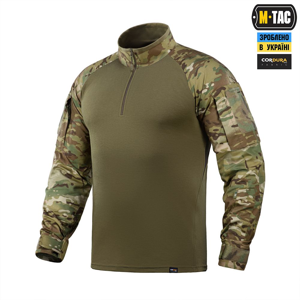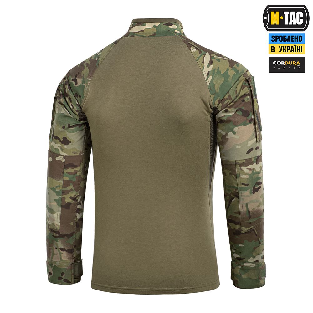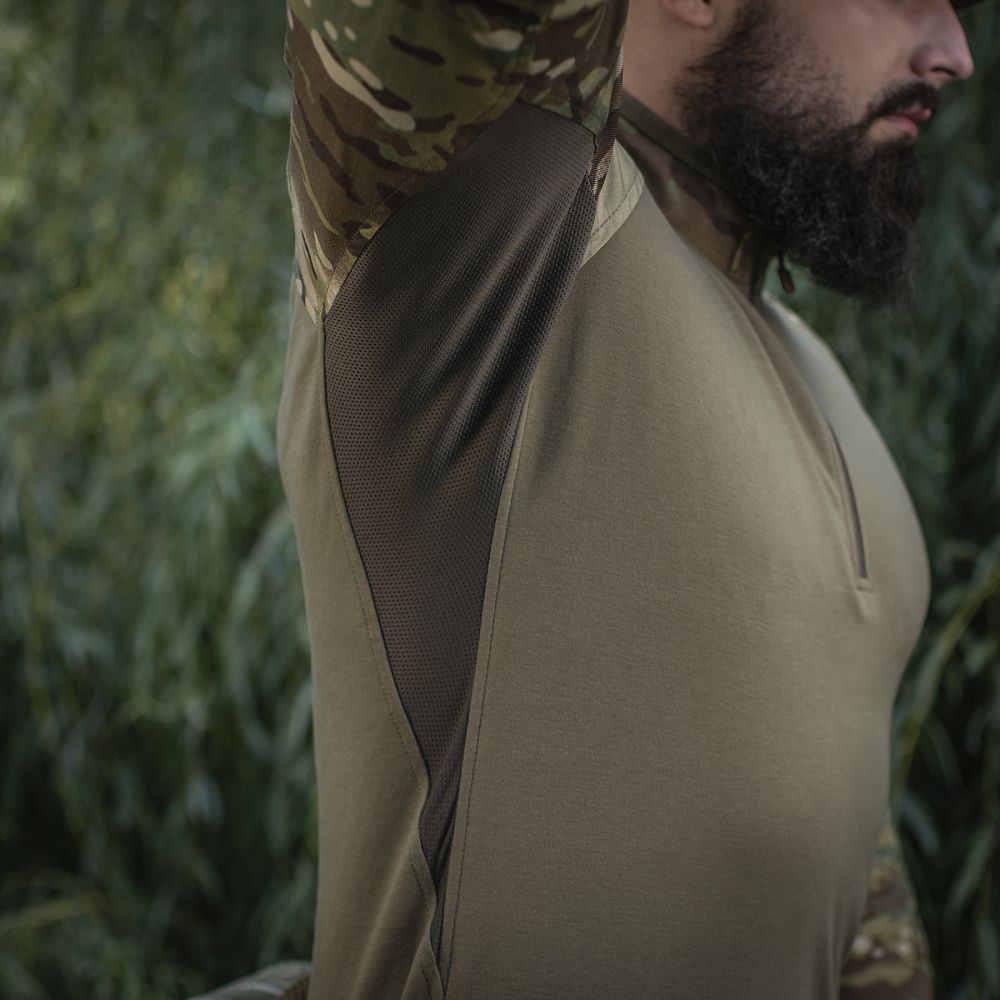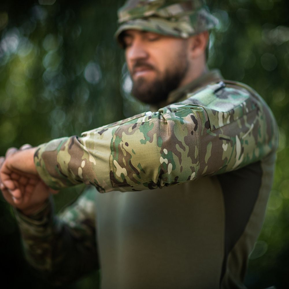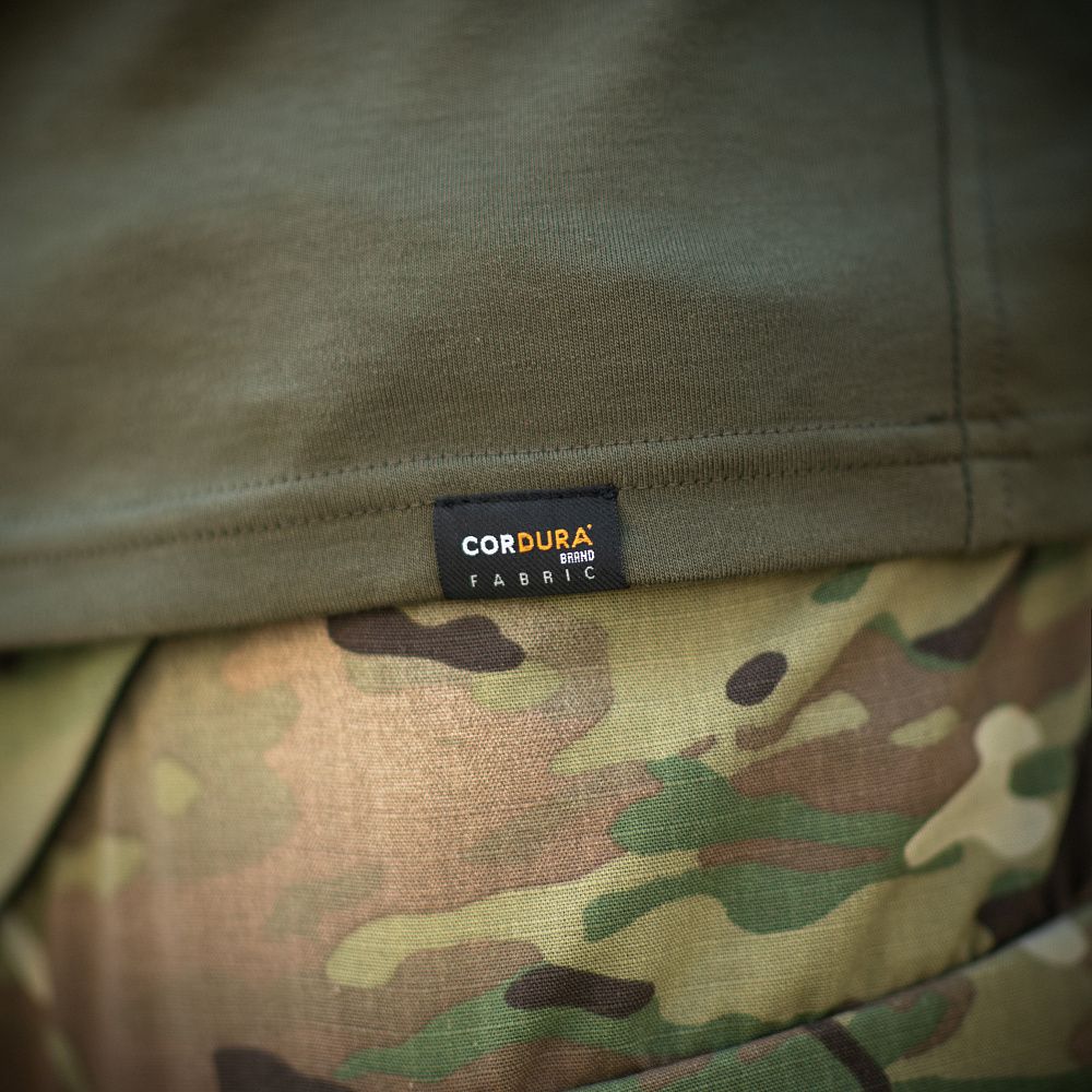 Спинка і торс пошиті з інноваційного матеріалу CORDURA BASELAYER (60/40 Cotton / Polyamide Cordura (R)), що приємний на дотик і забезпечує терморегуляцію тіла. Рукава виготовлені з легкої і міцної тканини:бавовна, поліестер. Це оптимальне поєднання стійкості до зношування і повітропроникності. Саме такої якості матеріал йде на пошиття уніформи для військових у Британії. Конструктори бренду під руками додали вставки з сітки для поліпшеної вентиляції і відведення вологи. Лікті посилені подвійним шаром тканини, яка забезпечує високу надійність при активному використанні. Також дизайнери передбачили нарукавні кишені, велкро панелі для ідентифікаторів і кишені для ручок.