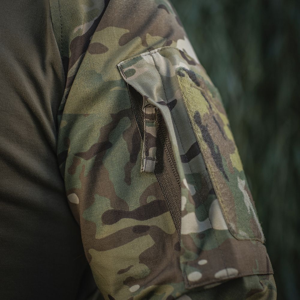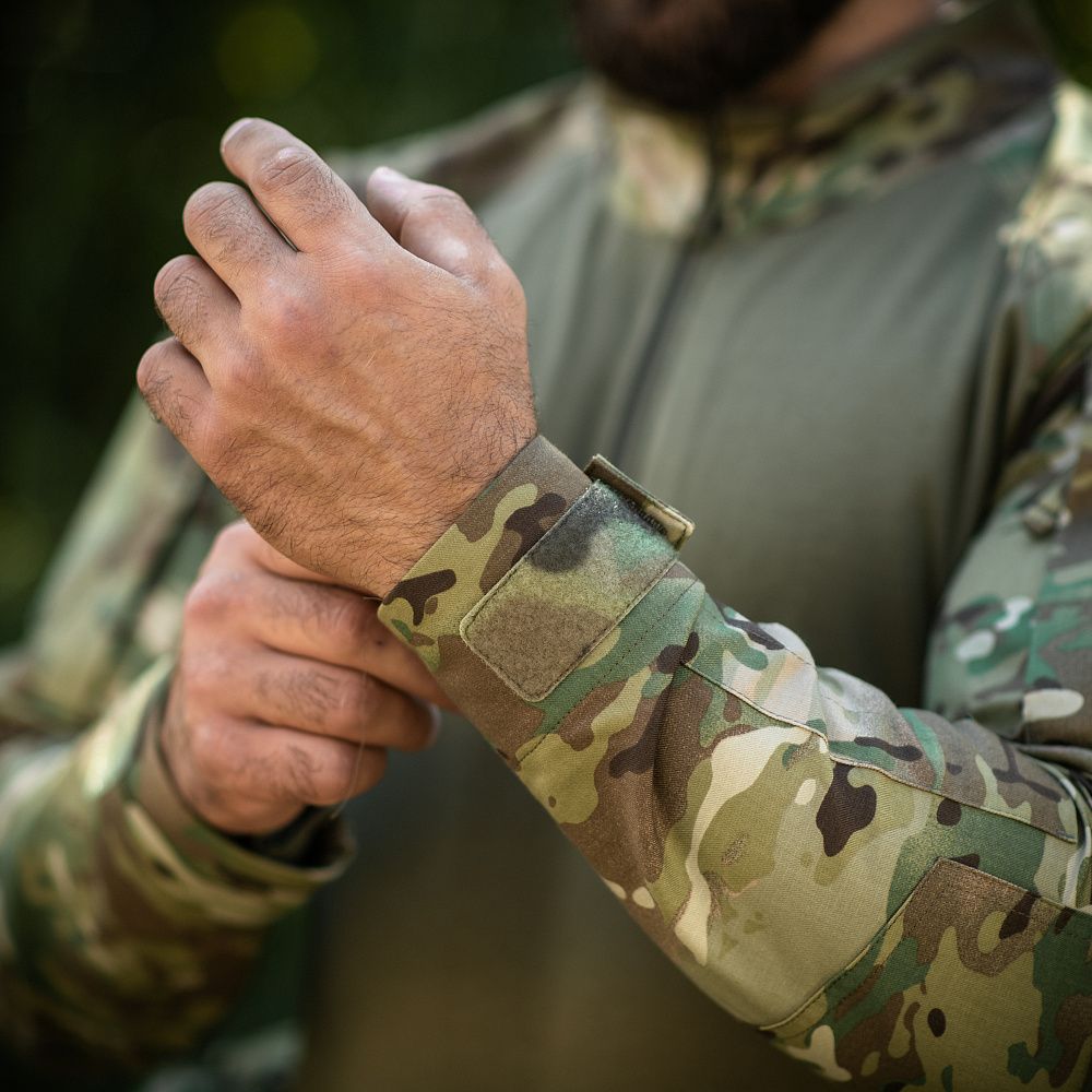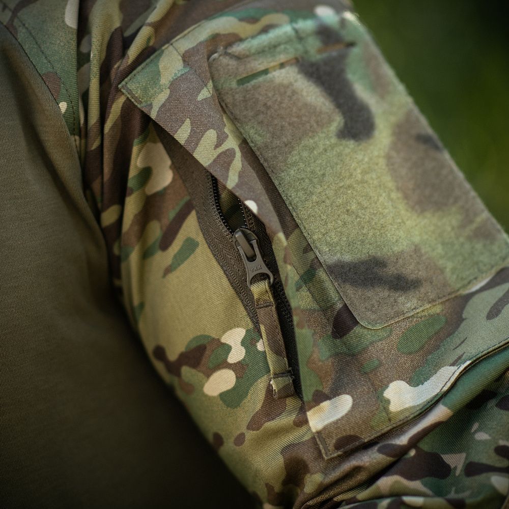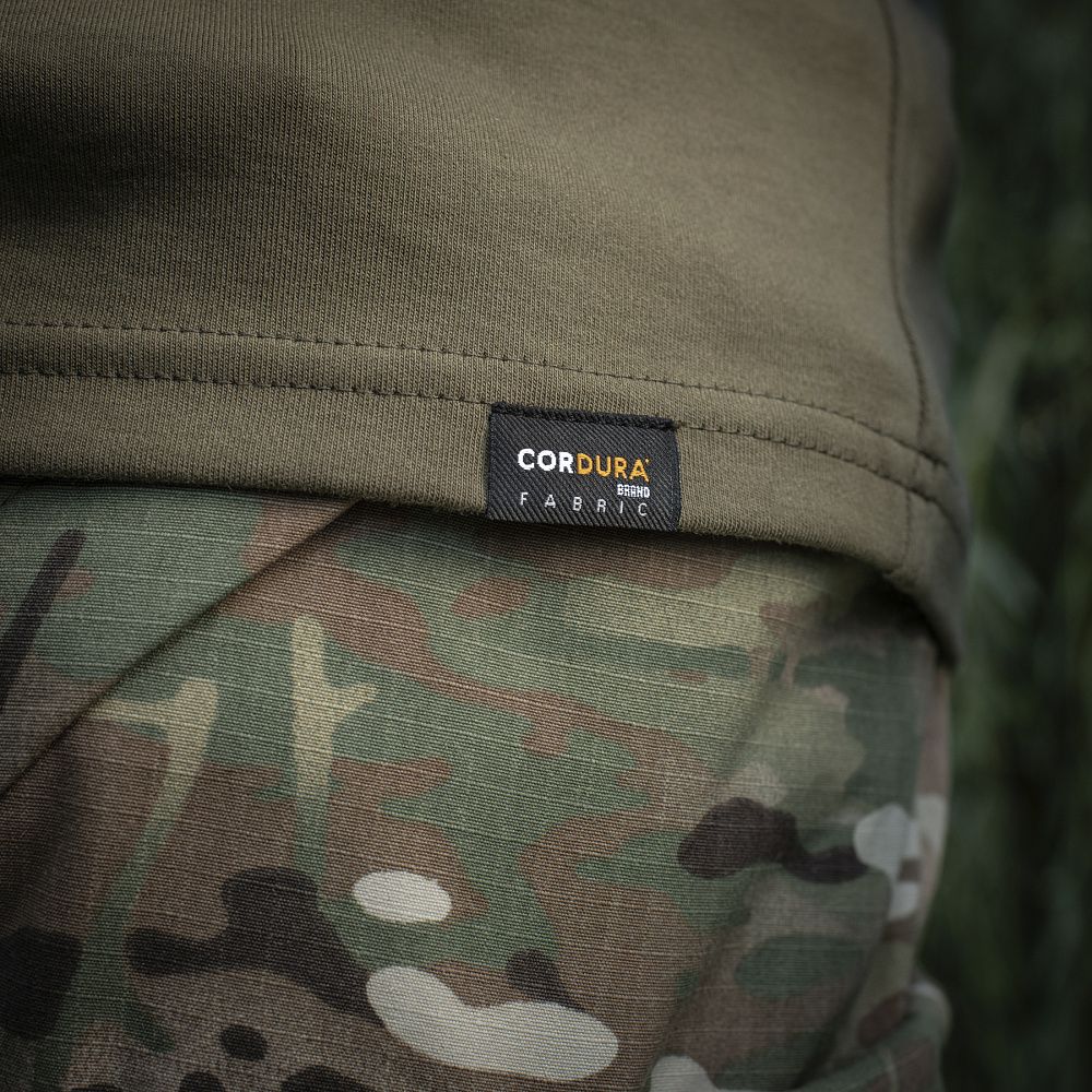 Спинка і торс пошиті з інноваційного матеріалу CORDURA BASELAYER (60/40 Cotton / Polyamide Cordura (R)), що приємний на дотик і забезпечує терморегуляцію тіла. Рукава виготовлені з легкої і міцної тканини:бавовна, поліестер. Це оптимальне поєднання стійкості до зношування і повітропроникності. Саме такої якості матеріал йде на пошиття уніформи для військових у Британії. Конструктори бренду під руками додали вставки з сітки для поліпшеної вентиляції і відведення вологи. Лікті посилені подвійним шаром тканини, яка забезпечує високу надійність при активному використанні. Також дизайнери передбачили нарукавні кишені, велкро панелі для ідентифікаторів і кишені для ручок.