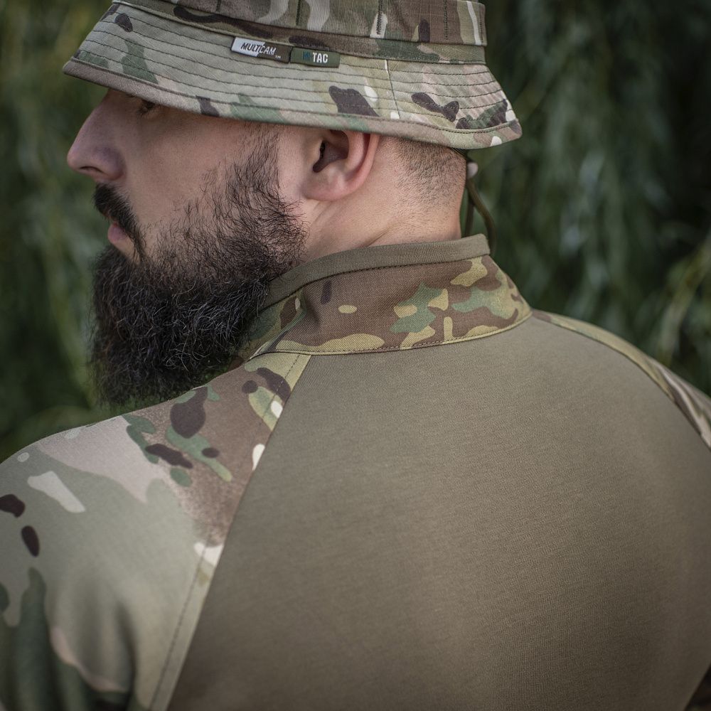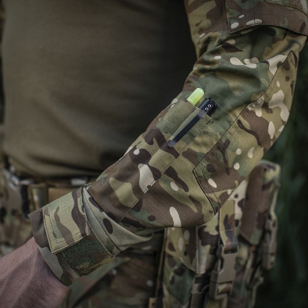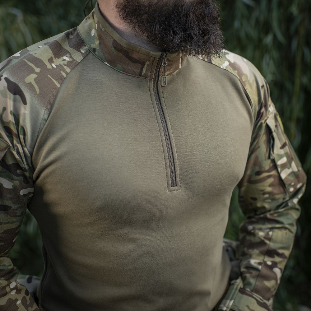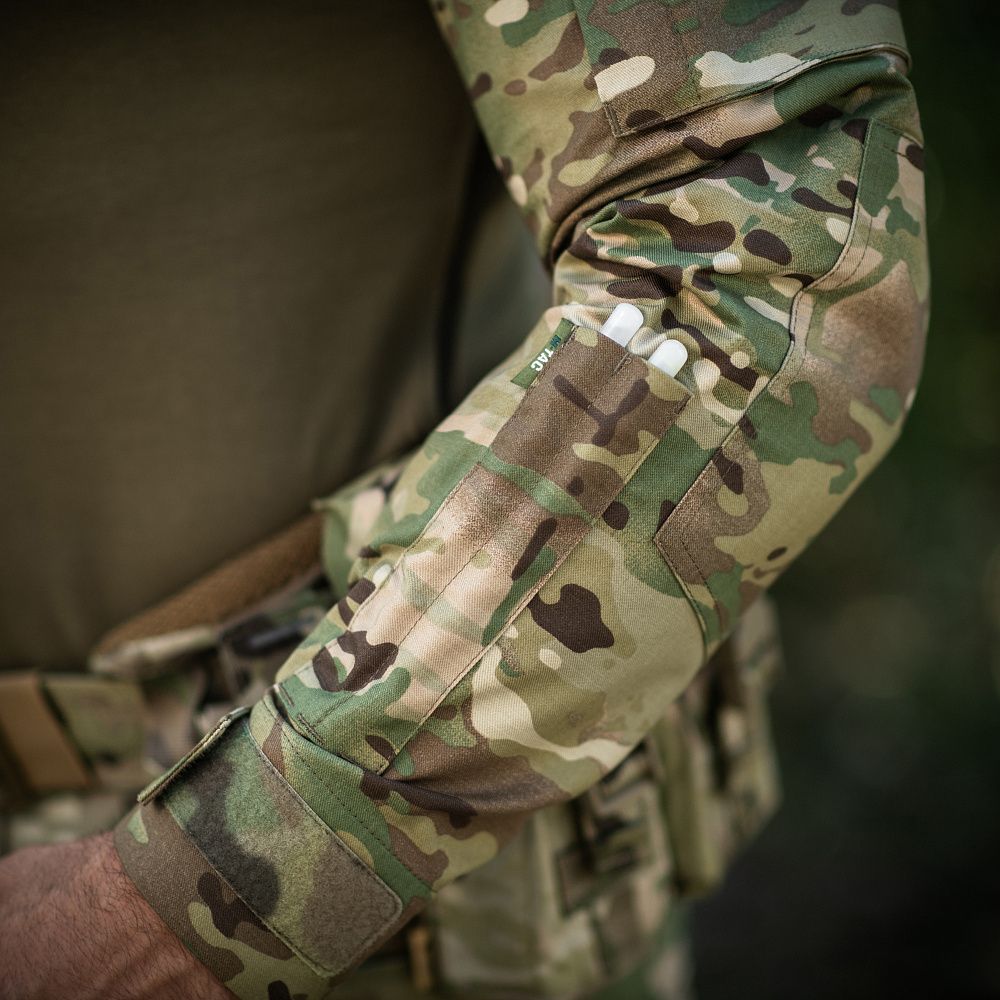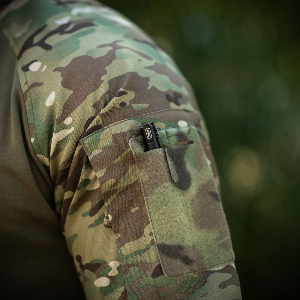 Спинка і торс пошиті з інноваційного матеріалу CORDURA BASELAYER (60/40 Cotton / Polyamide Cordura (R)), що приємний на дотик і забезпечує терморегуляцію тіла. Рукава виготовлені з легкої і міцної тканини:бавовна, поліестер. Це оптимальне поєднання стійкості до зношування і повітропроникності. Саме такої якості матеріал йде на пошиття уніформи для військових у Британії. Конструктори бренду під руками додали вставки з сітки для поліпшеної вентиляції і відведення вологи. Лікті посилені подвійним шаром тканини, яка забезпечує високу надійність при активному використанні. Також дизайнери передбачили нарукавні кишені, велкро панелі для ідентифікаторів і кишені для ручок.