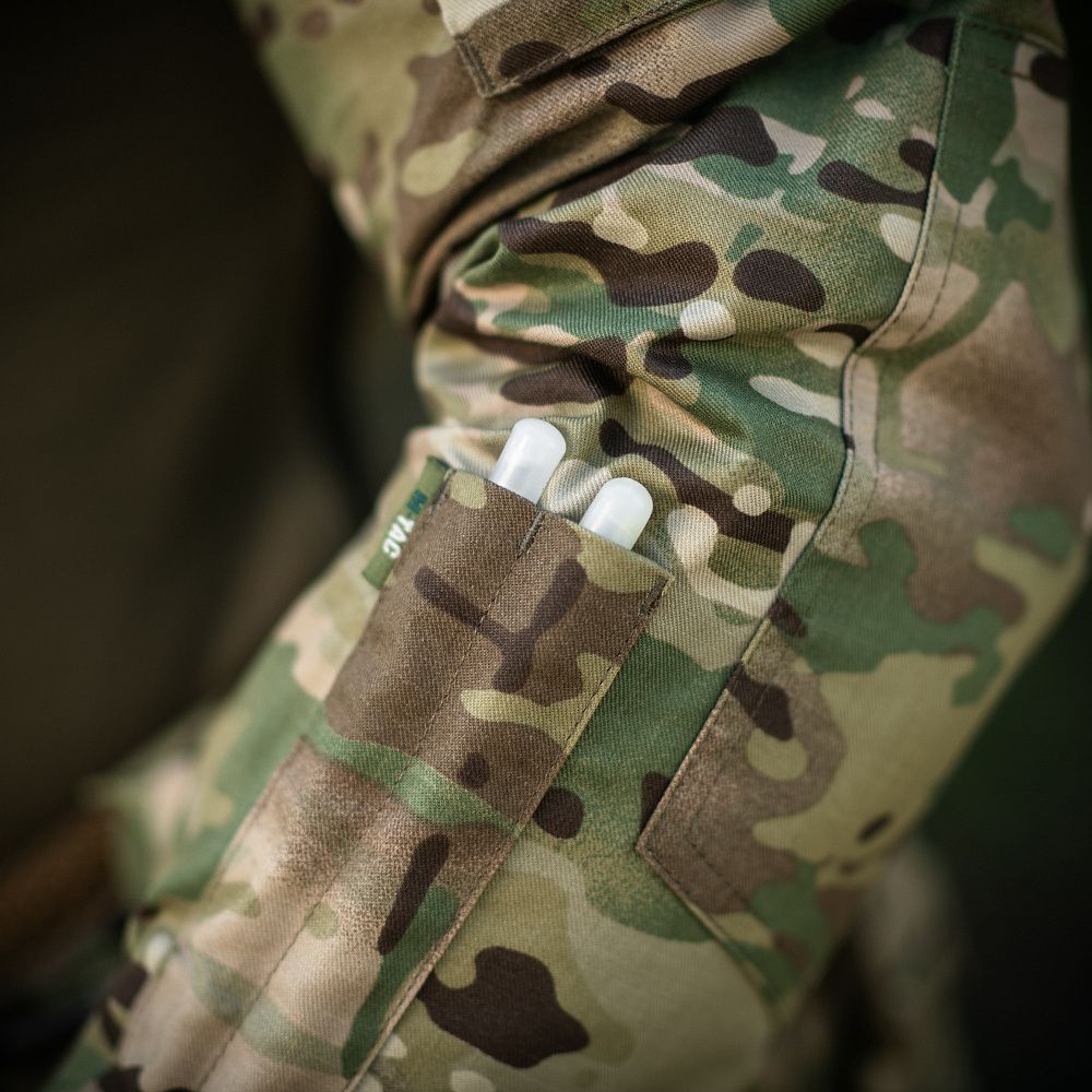 Прикриті клапаном нарукавні кишені з вертикальним входом. Додаткові відсіки на лівому рукаві під ручки або хімсвітло. |