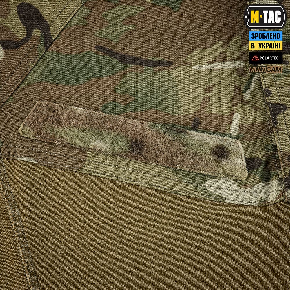 M-TAC СОРОЧКА БОЙОВА STURM NYCO EXTREME MULTICAM має велкро панелі на передній частині та рукавах, призначені для кріплення ідентифікаторів та патчів. Для пришвидшеного розстібання, дана модель оснащена велкро-застібкою на комірі. Бічні частини сорочки мають стаціонарно прострочені м’які вставки, головна задача яких – виключити фактор натирання при використанні РПС.