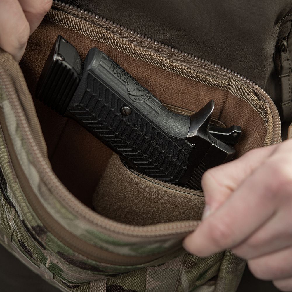 - Велкро-панель, що дозволить розмістити зброю в зручному для витягання положенні за допомогою кобури вставки. (Вставка в комплекті не йде) |