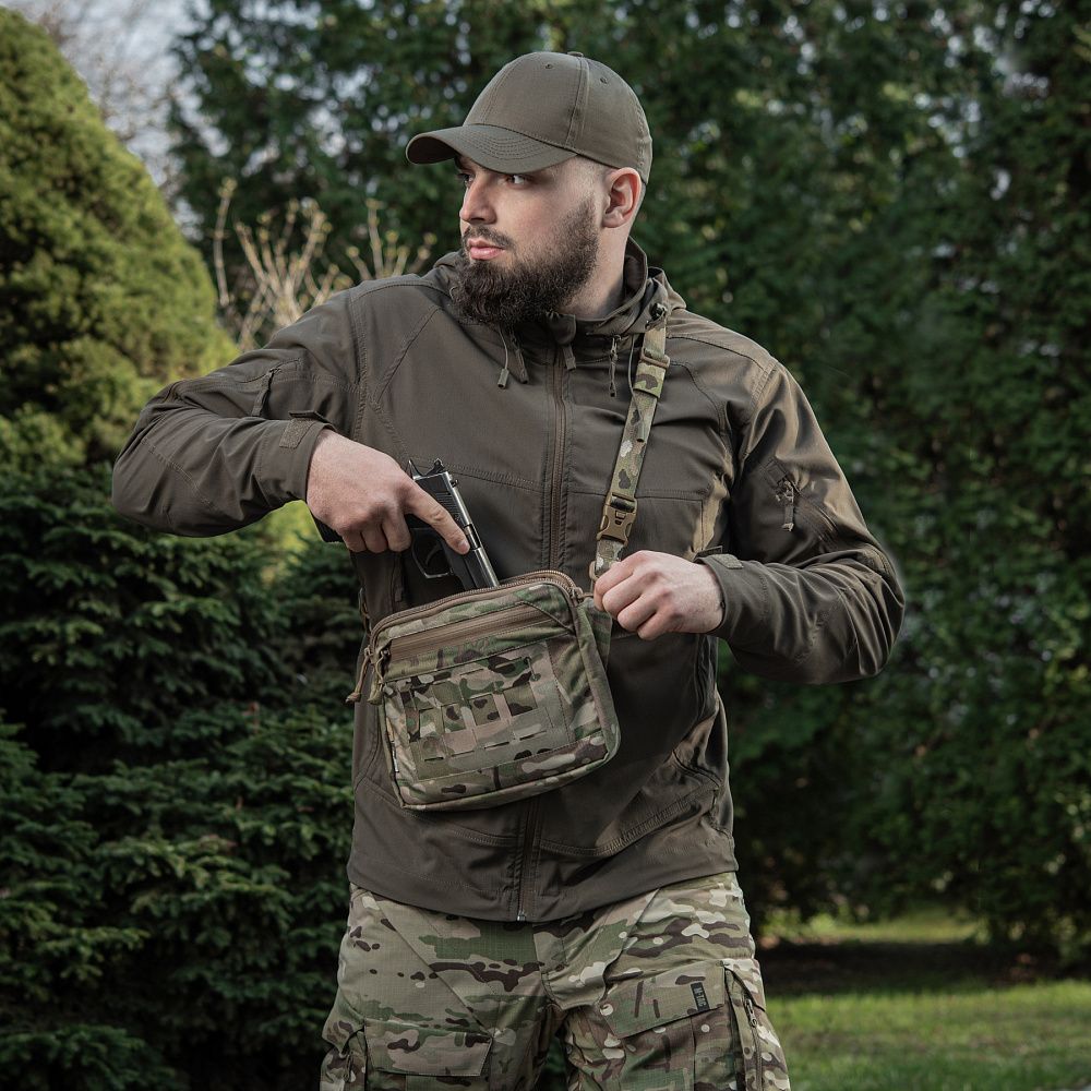 Дана модель має дві кишені та одну регульовану плечову лямку з фастексом швидкого скидання. Внутрішня стінка основного відділення зроблена з велкро велюру, що дозволяє кріпити модульні вставки. Спереду знаходиться невелика врізна кишеня на вологозахисній блискавці та молле інтерфейс для кріплення додаткового спорядження. Спинка оснащена м'якою демпферною сіткою з отвором під телефон.