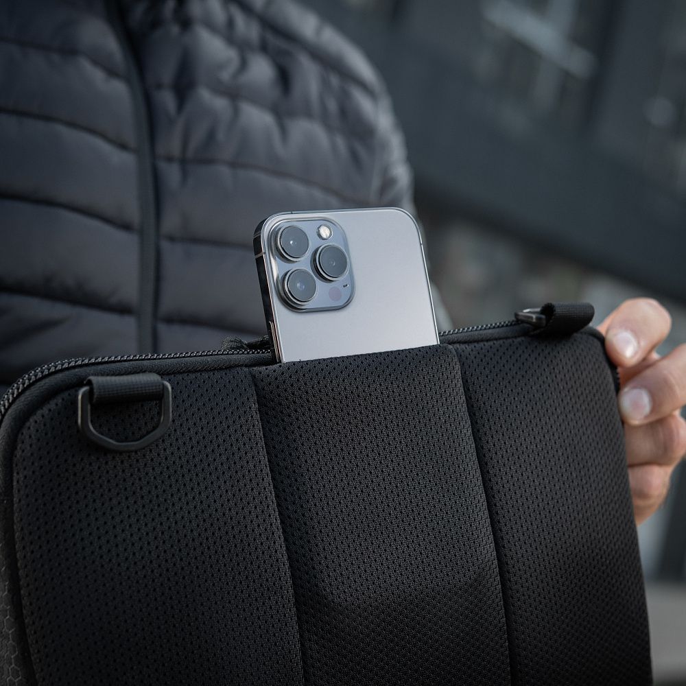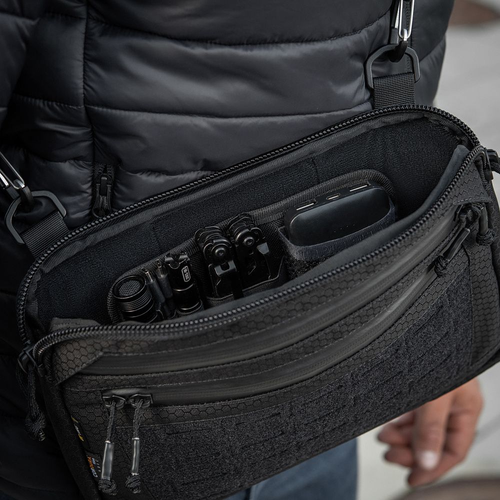 Дана модель має три кишені та одну регульовану плечову лямку з фастексом швидкого скидання. Внутрішня стінка основного відділення зроблена з велкро полотна, що дозволяє кріпити модульні вставки. Спереду знаходяться дві невеликі врізні кишені на вологозахисній блискавці та MOLLE інтерфейс для кріплення додаткового спорядження. Спинка оснащена м'якою демпферною сіткою з отвором під телефон.
