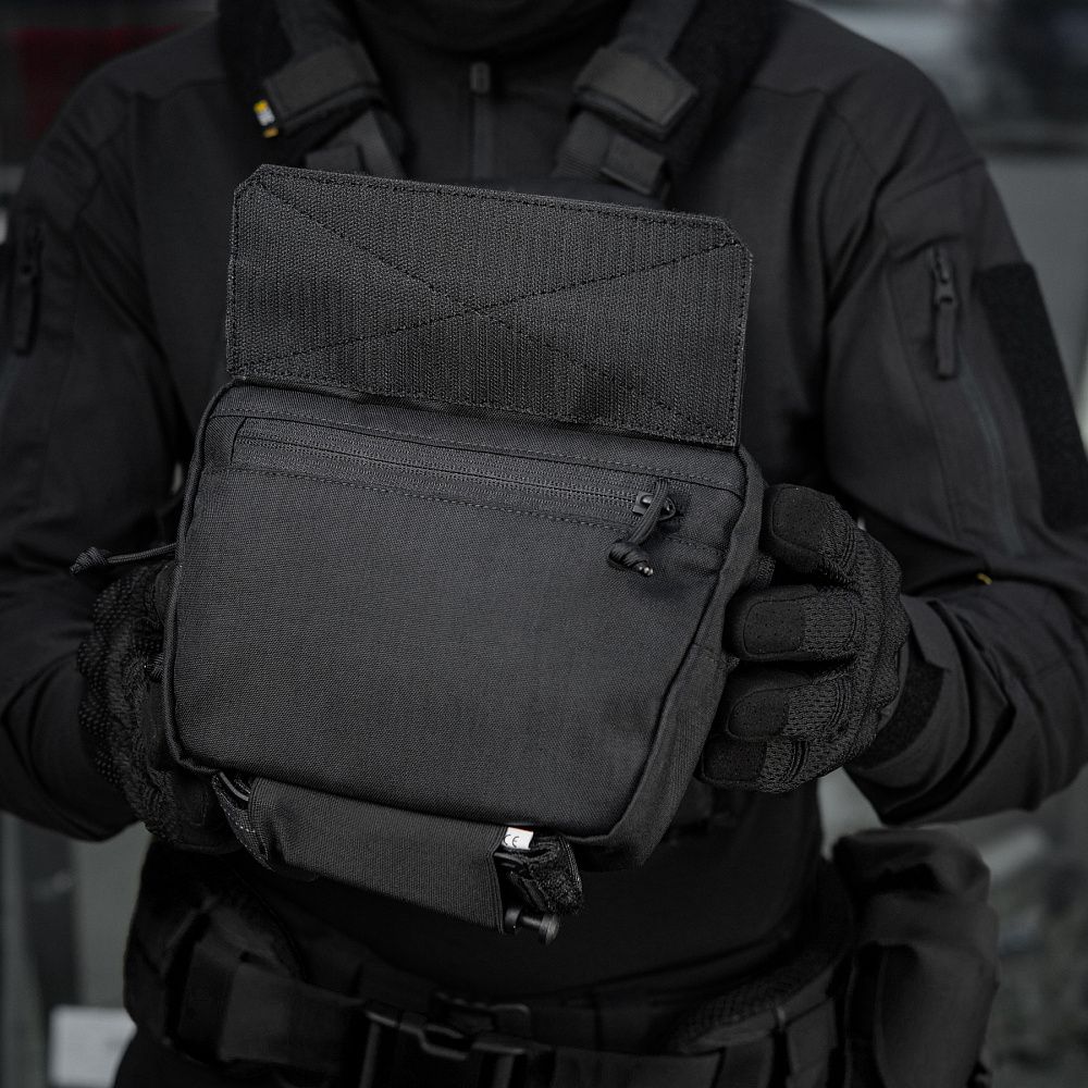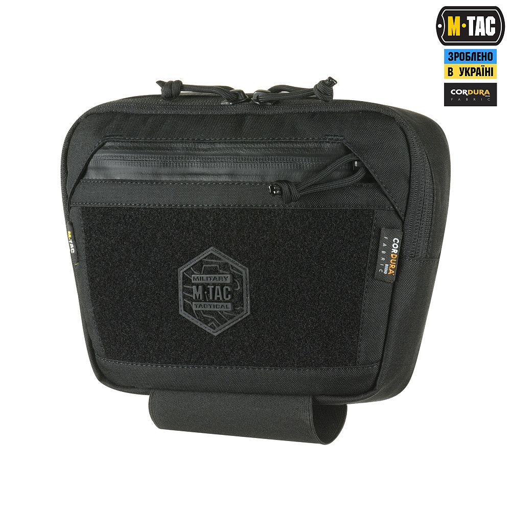 Сумка-напашник має 3 відділення, які дозволяють вмістити речі першої необхідності. В даній генерації дизайнери бренду передбачили фронтальну велкро панель, по центру якої розміщений стильний шестикутник із логотипом бренду. Додатково в задню кишеню сумки-напашника можна встановити М-Тас балістичний пакет 1А класу (в комплекті не йде). Знизу виробу є еластичне кріплення для турнікета.