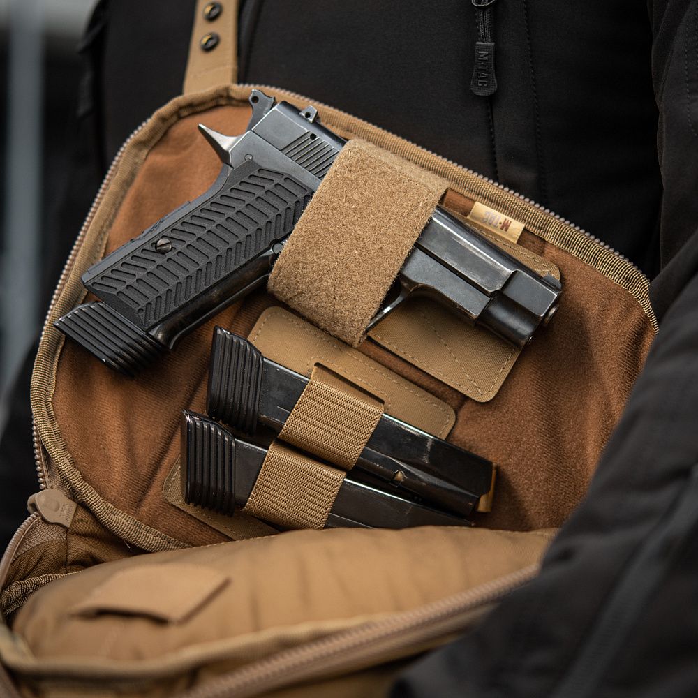 - відділення для прихованого носіння зброї з системою швидкого відкривання та можливістю прикріпити модульні вставки; - два відділення на блискавці призначені для повсякденних речей; - ремінь сумки має фастекс швидкого скидання і регулюється по довжині; - на спинці є відкрита кишеня для смартфона; - спинка оснащена м'якою сіткою. |