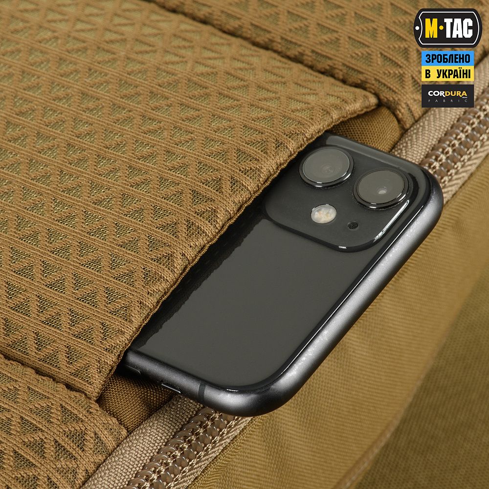 Виготовлена із Cordura 500D, Cordura 1000D – високоякісних матеріалів, стійких до стирання, механічних пошкоджень і високих навантажень. Блискавки та пряжки від YKK і Woojin – світових лідерів із виробництва фурнітури.