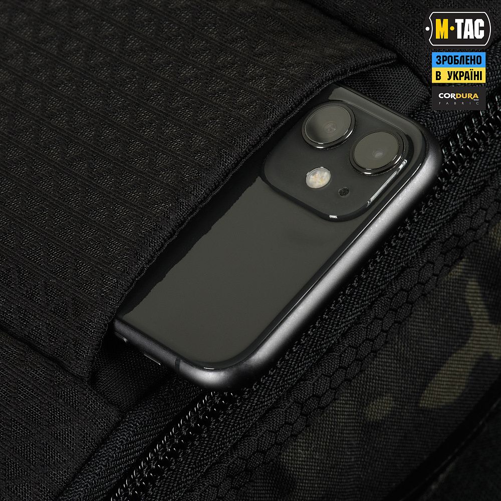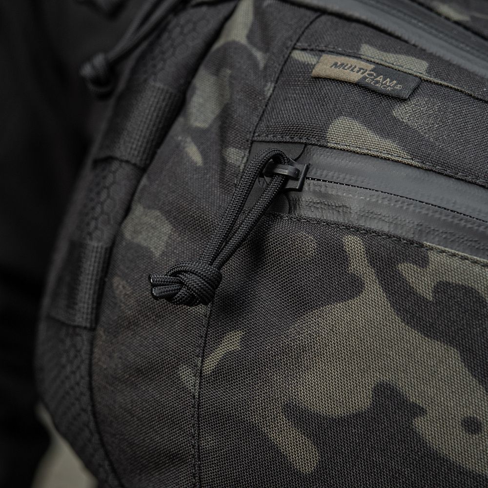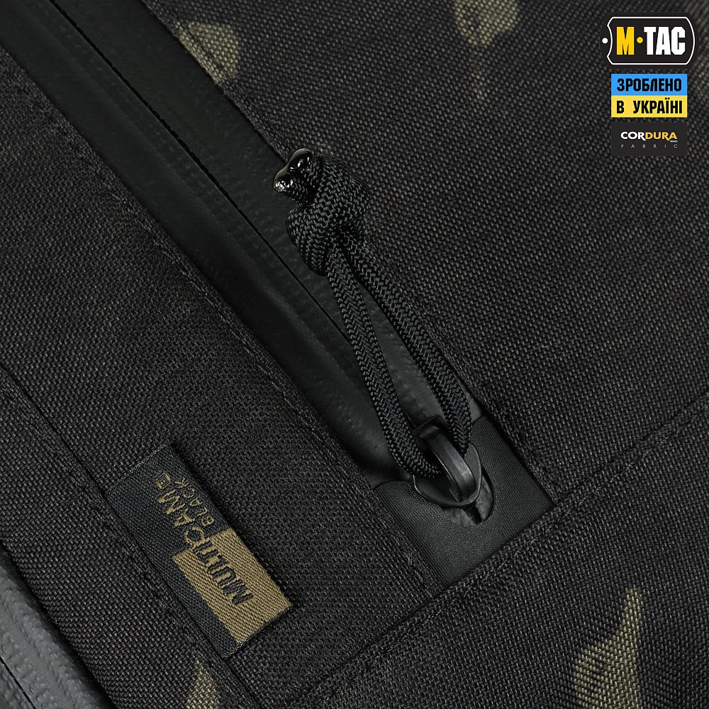 Виготовлена з Cordura 500D Multicam Black в поєднанні з надміцними вставками з Cordura Hex. Це високоякісні матеріали, стійкі до механічних пошкоджень, стирання і великих навантажень. Блискавки та пряжки від YKK і Woojin – світових лідерів із виробництва фурнітури.