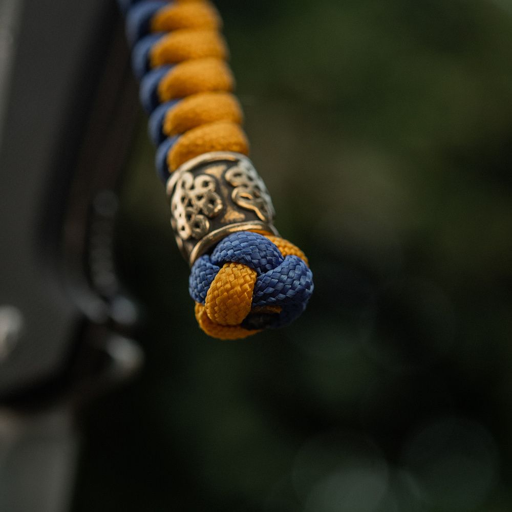 Темляк із плетеного паракорда – це стильна декоративна прикраса, яка придасть оригінальності вашим аксесуарам та підкреслить індивідуальність власника. Також темляк значно спростить процес виймання ножа з кишені або його пошук серед спорядження. Декоративна намистина додасть особливої родзинки темляку.