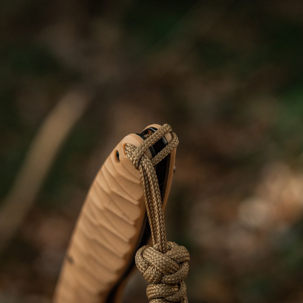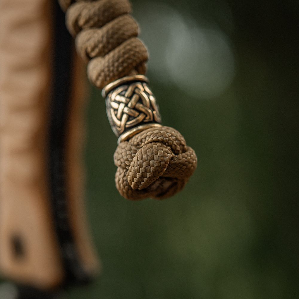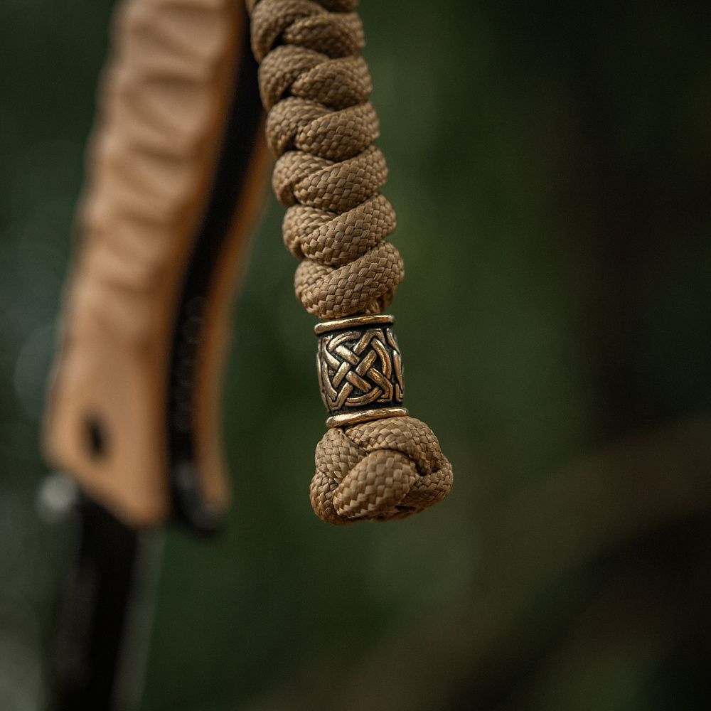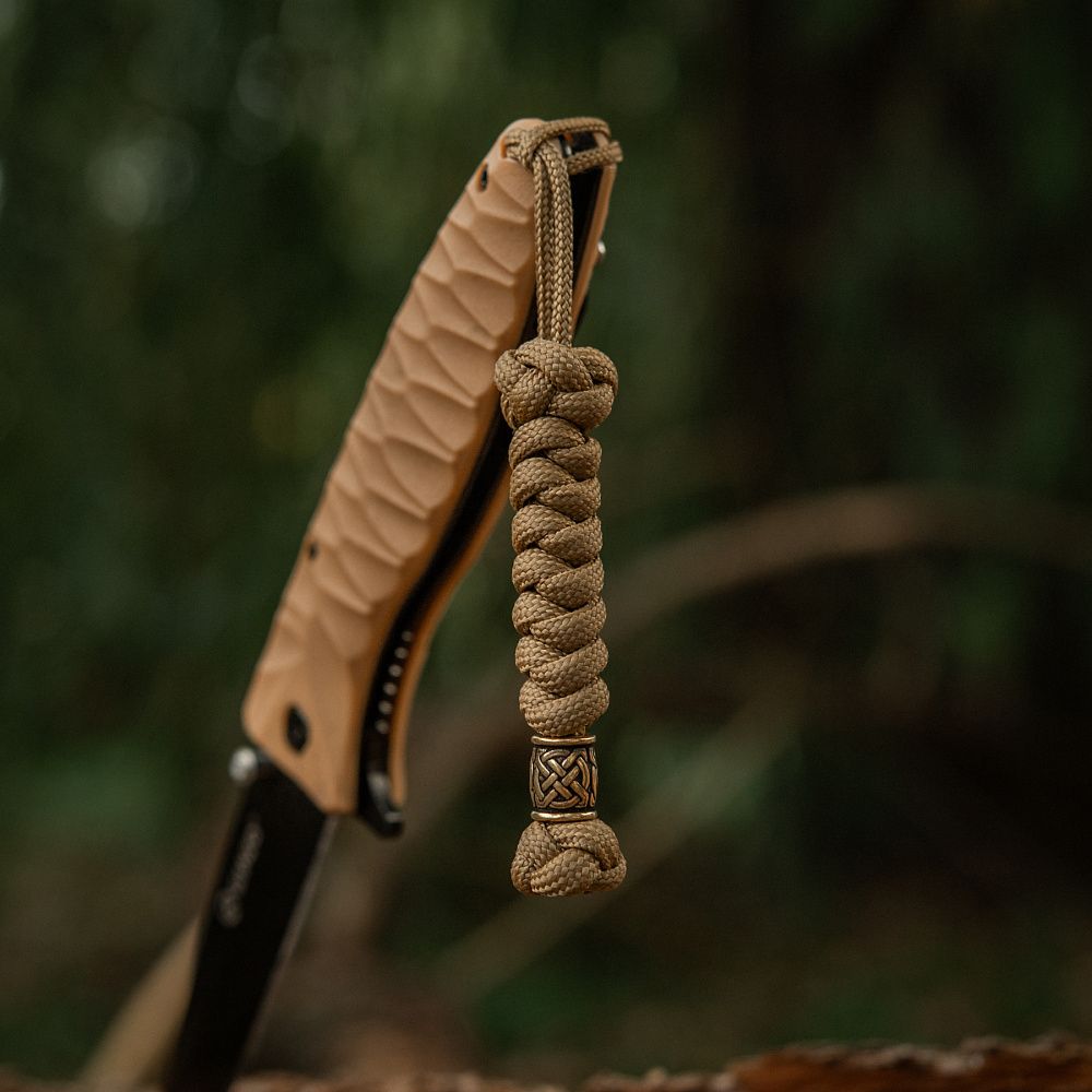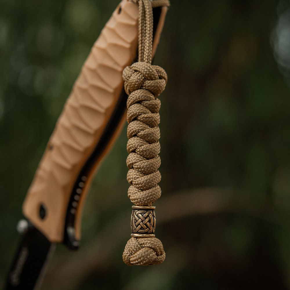 Темляк із плетеного паракорда – це стильна декоративна прикраса, яка придасть оригінальності вашим аксесуарам та підкреслить індивідуальність власника. Також темляк значно спростить процес виймання ножа з кишені або його пошук серед спорядження. Декоративна намистина додасть особливої родзинки темляку.