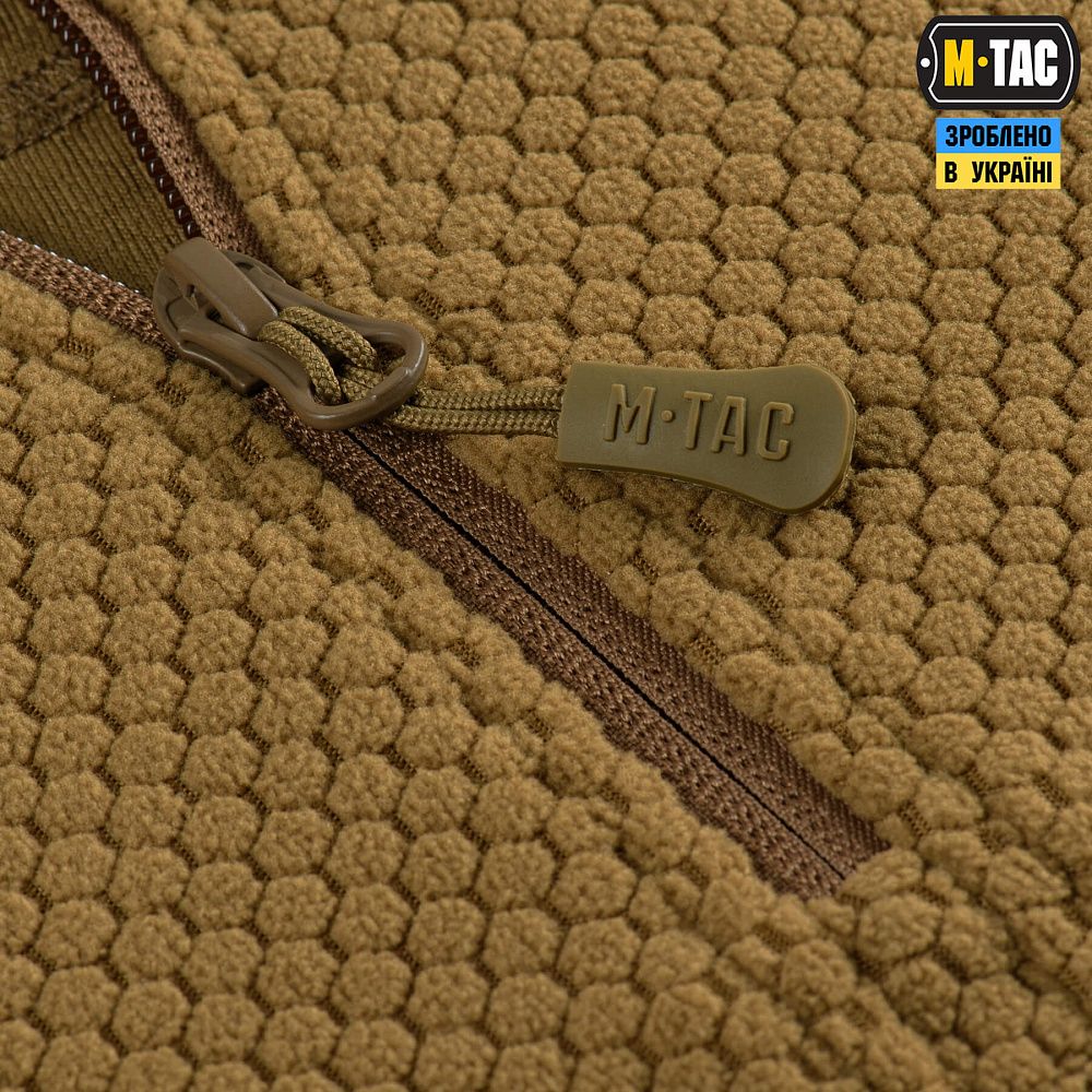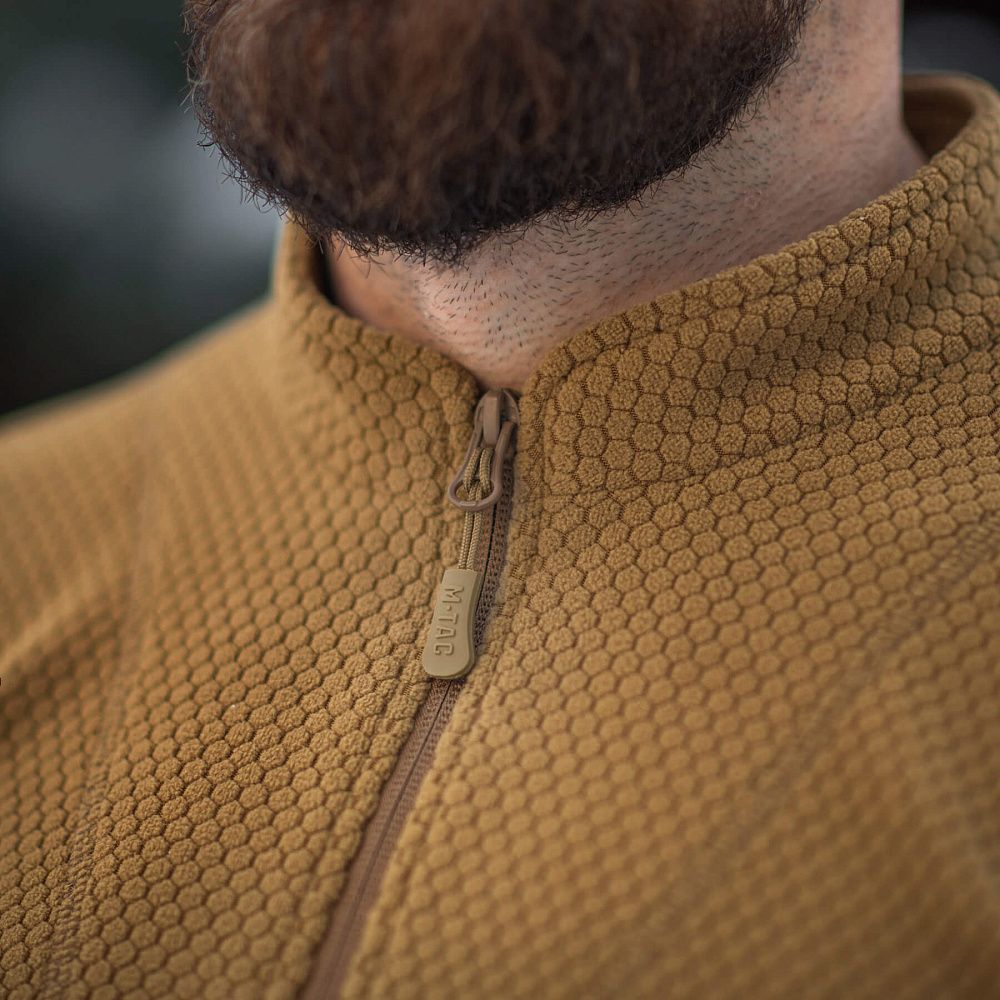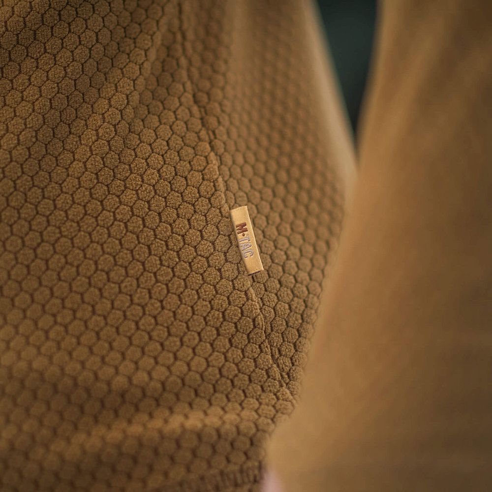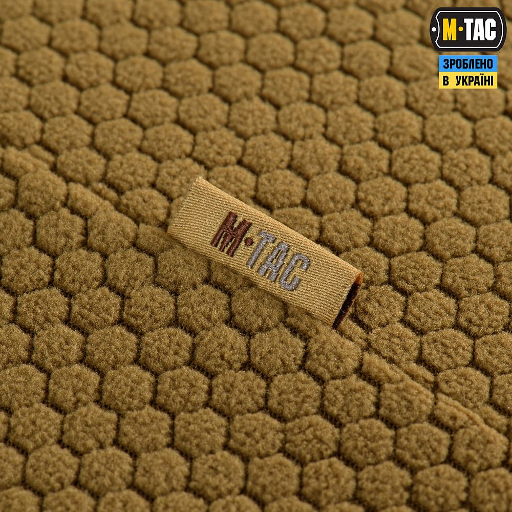 Пошита з якісного флісу (100% поліестер), з рельєфною шестикутною структурою, який забезпечує хорошу терморегуляцію, швидко відводить вологу та запобігає деформації виробу під час тривалого використання.
