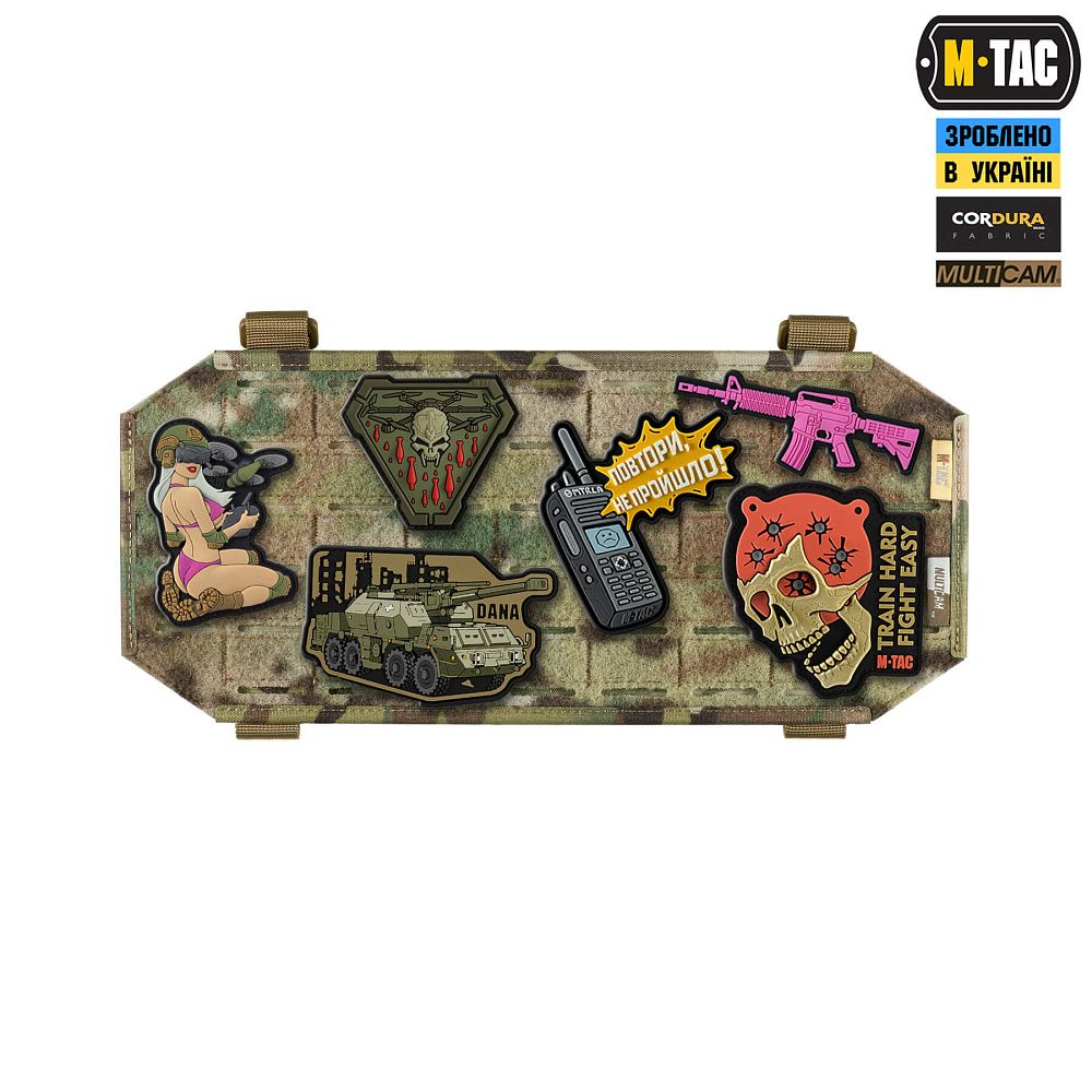 Передня частина панелі виконана з велкро полотна, на яке нашивки легко чіпляються та надійно тримаються (нашивки на зображенні – є демонстрацією можливого розташування, в комплекті не йдуть).