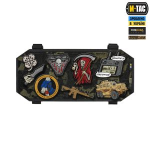 Передня частина панелі виконана з велкро полотна, на яке нашивки легко чіпляються та надійно тримаються (нашивки на зображенні – є демонстрацією можливого розташування, в комплекті не йдуть).