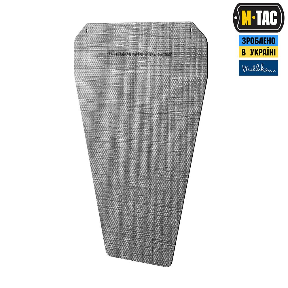 Бренд М-Тас розробив та випустив спеціальну вставку-каркас в M-TAC ФАРТУХ ПРОТИУЛАМКОВИЙ З БАЛІСТИЧНИМ ПАКЕТОМ 1 КЛАС LASER CUT, що надає виробу жорсткості та запобігає ковзанню балістичного пакета при активних фізичних навантаженнях.