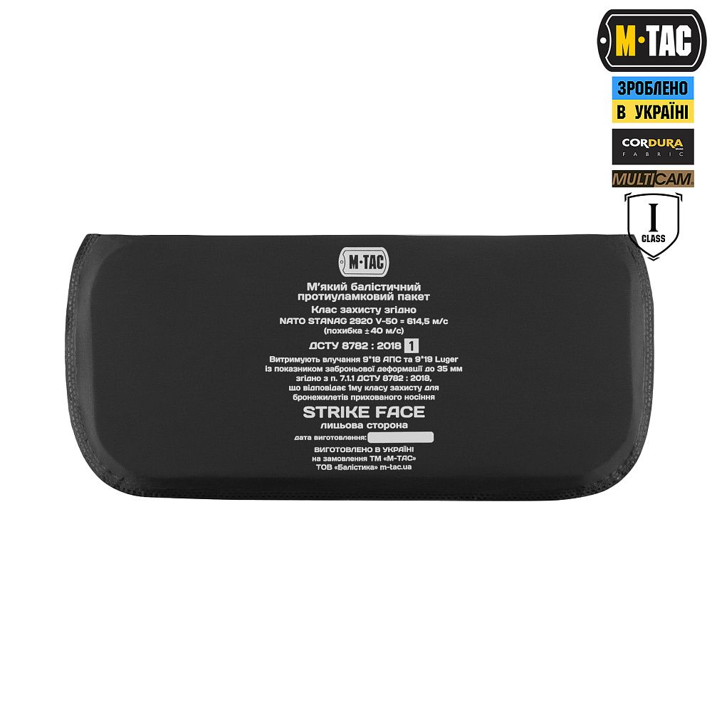 - сумісний з М-Тас плитоносками Cuirass QRS або з будь-якою іншою плитоноскою, нижня частина якої закривається на велкро клапан; - комплектується балістичним пакетом 1А класу; |