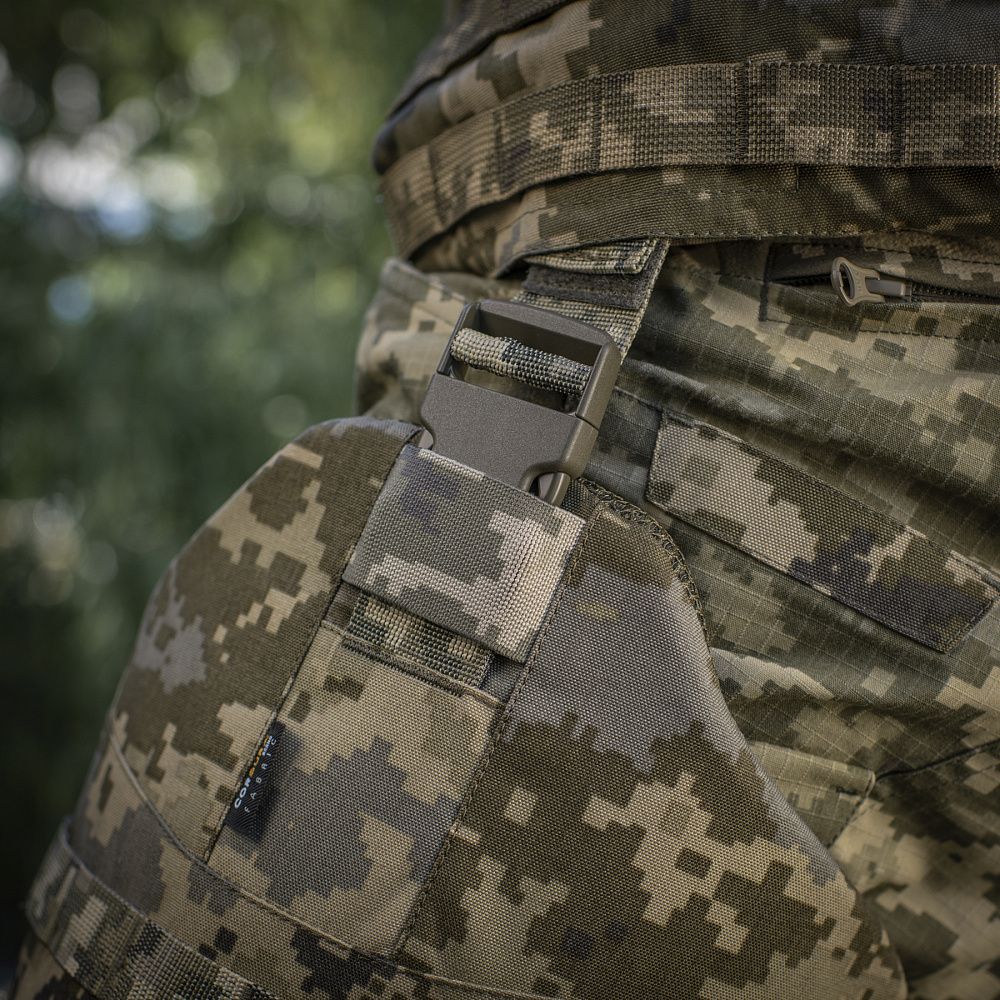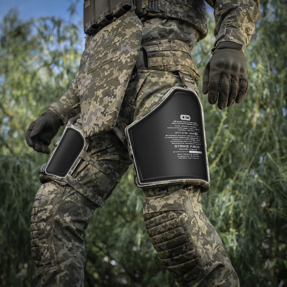 Неможливо передбачити, звідки прилетить ворожа куля чи уламки, тож варто заздалегідь дбати про власну безпеку. Бренд М-Тас розробив ЗАХИСТ СТЕГОН З БАЛІСТИЧНИМ ПАКЕТОМ 2 КЛАС, що значно збільшує площу захисту тіла бійця. Виріб являє собою компактний, знімний модуль, що забезпечує протиуламковий захист стегна (стегнових кісток та артерій).