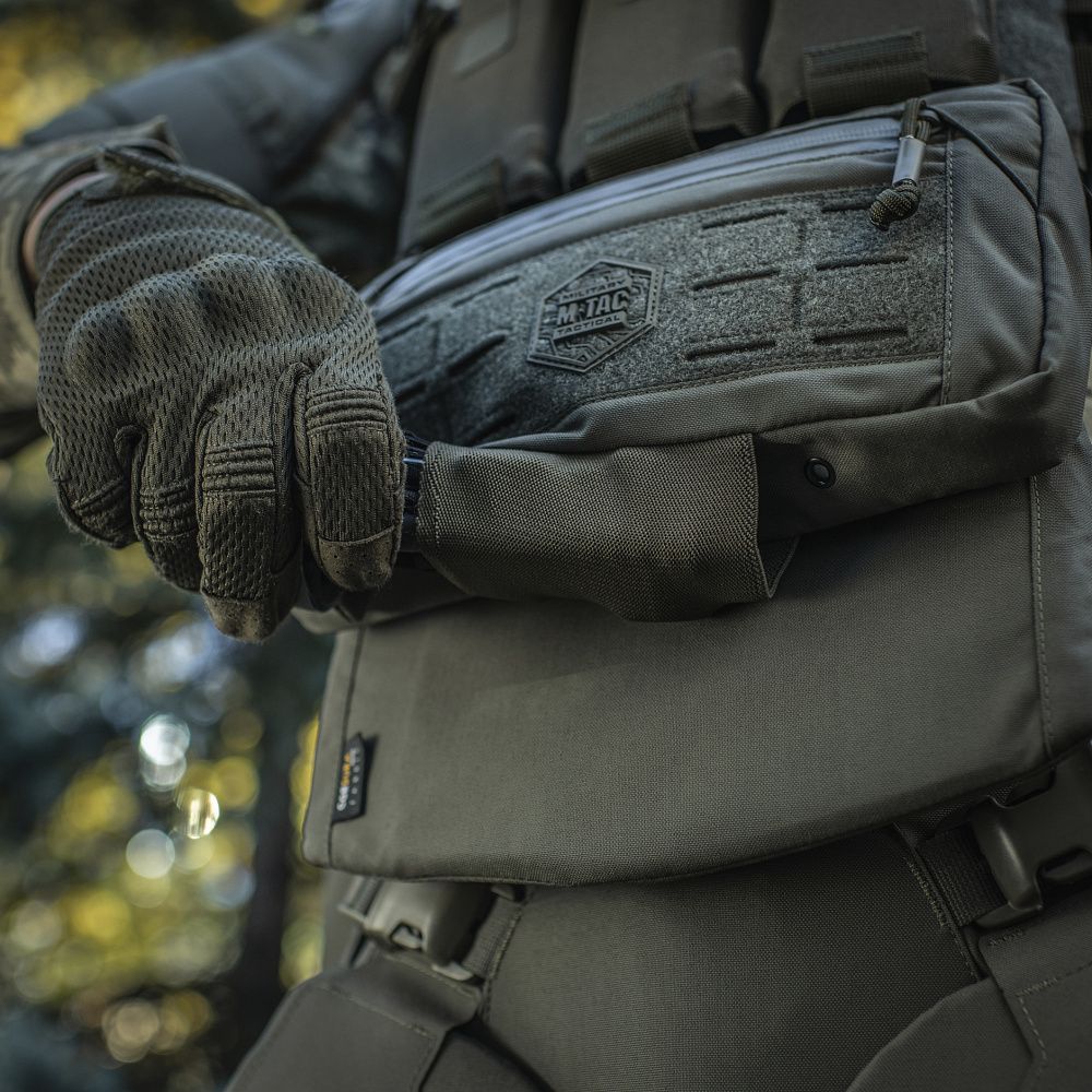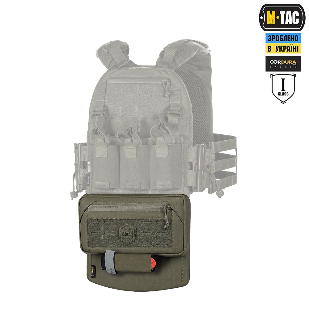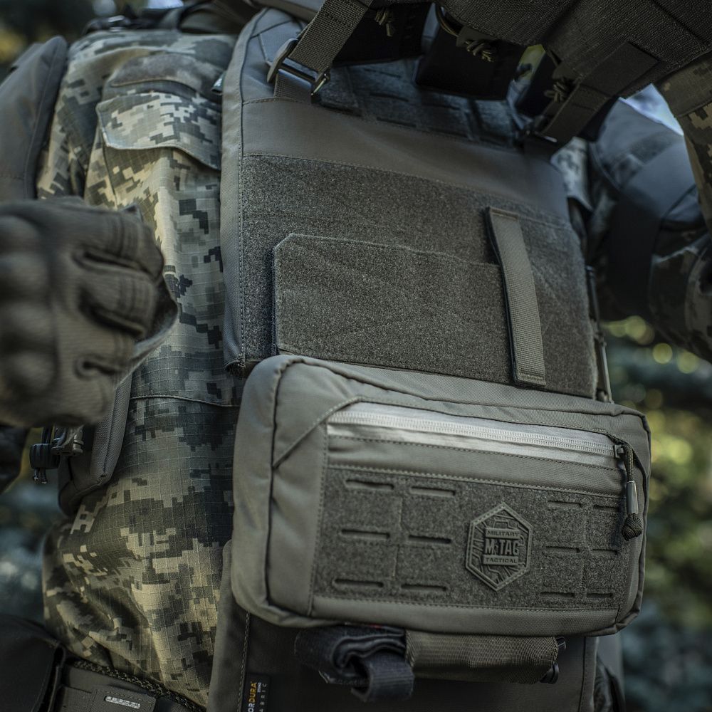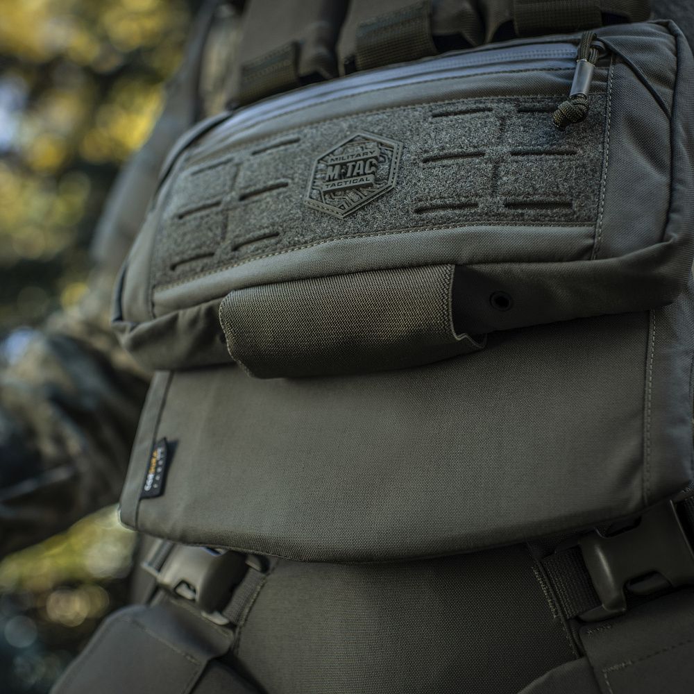 Виготовлений з Cordura 500D - міцного матеріалу, стійкого до стирання і високих навантажень. Верхня секція модуля оснащена інтегрованим підсумком, який складається з однієї достатньо місткої кишені на вологозахисній застібці-блискавці. На фронтальній частині підсумка розміщена велкро-панель з прорізами, призначена для розміщення як додаткового спорядження, так і ідентифікаторів і патчів. Знизу підсумка розташована еластична резинка призначення для розміщення турнікету, а також спеціальні люверси, для відведення бруду і пилу які потрапили всередину підсумка.