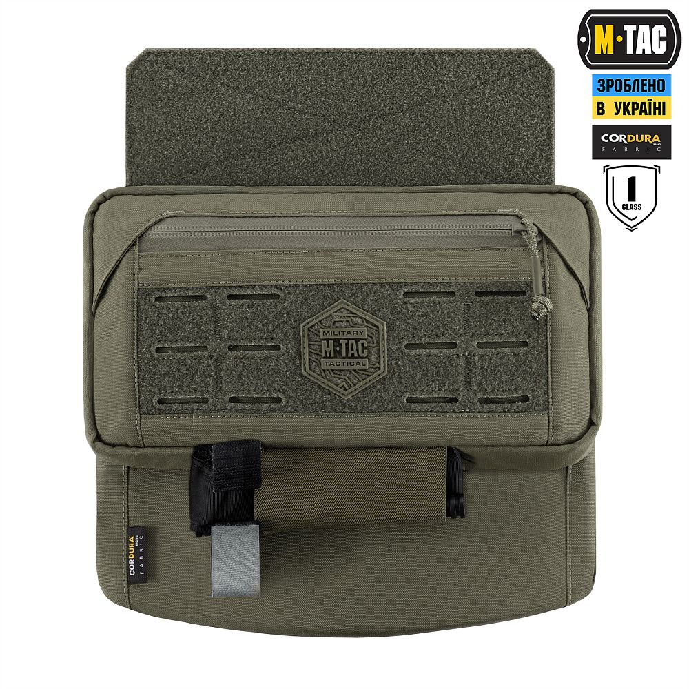 M-Tac захист живота з балістичним пакетом 1 клас захисту можна закріпити як до велкро-панелі, розташованої під передньою плитою, так і до флеп-панелі. Це можливо завдяки велкро-панелі, розташованій на верхній частині модуля. Шершава частина велкро-панелі є двосторонньою, завдяки чому, її положення можна змінювати відповідно до обраного Вами методу кріплення.