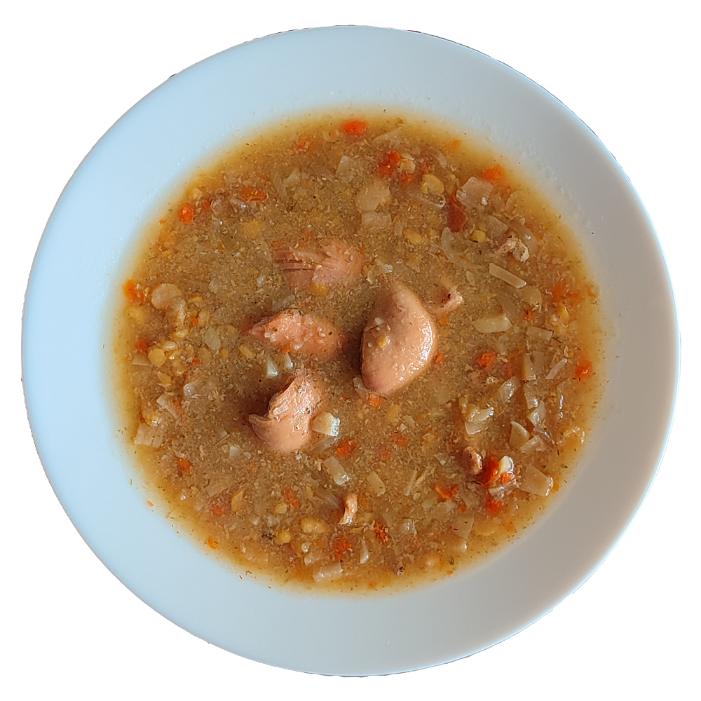 Гарячий, насичений смак традиційного українського горохового супу з додаванням ніжного курячого м’яса — саме те, що потрібно для смачного та швидкого обіду чи вечері. Упакований в герметичний реторт-пакет, зберігає аромат і текстуру свіжості до 24 місяців (при дотриманні умов зберігання).
